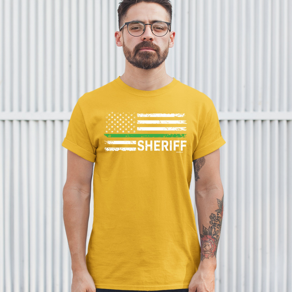 SHERIFF DISTRESSED AMERICAN FLAG t-shirt first responders patriotic men's tee yellow