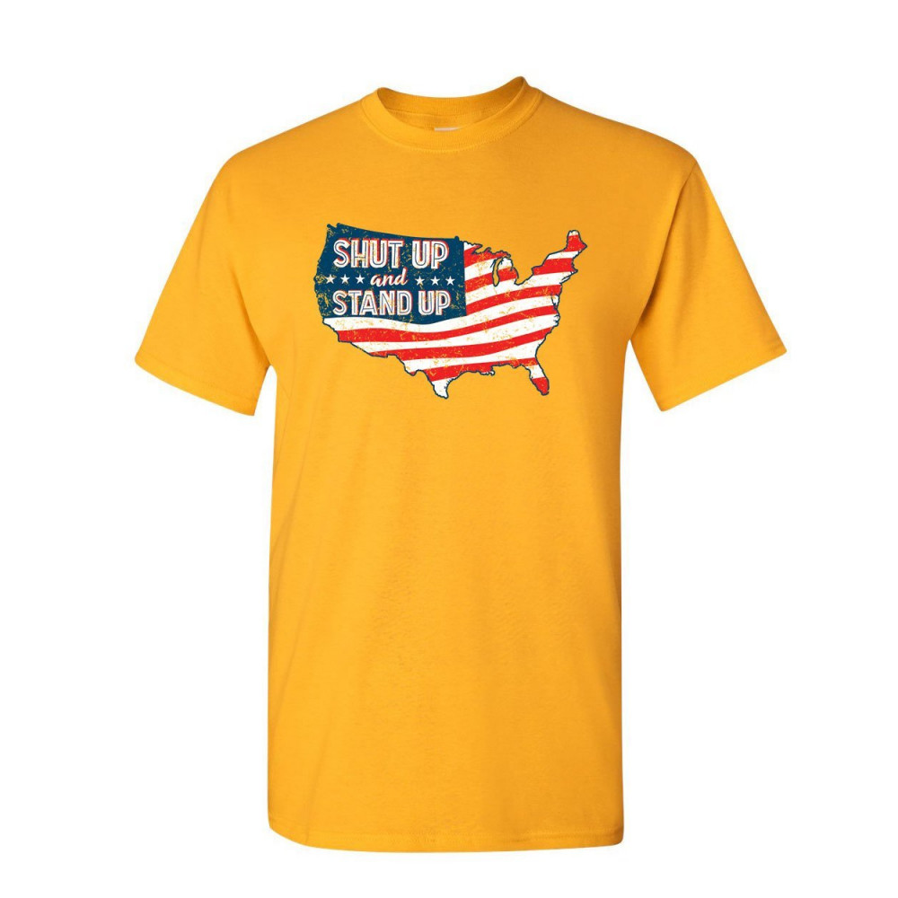 SHUT UP AND STAND UP t-shirt anthem usa map maga flag patriotic mens tee shirt yellow