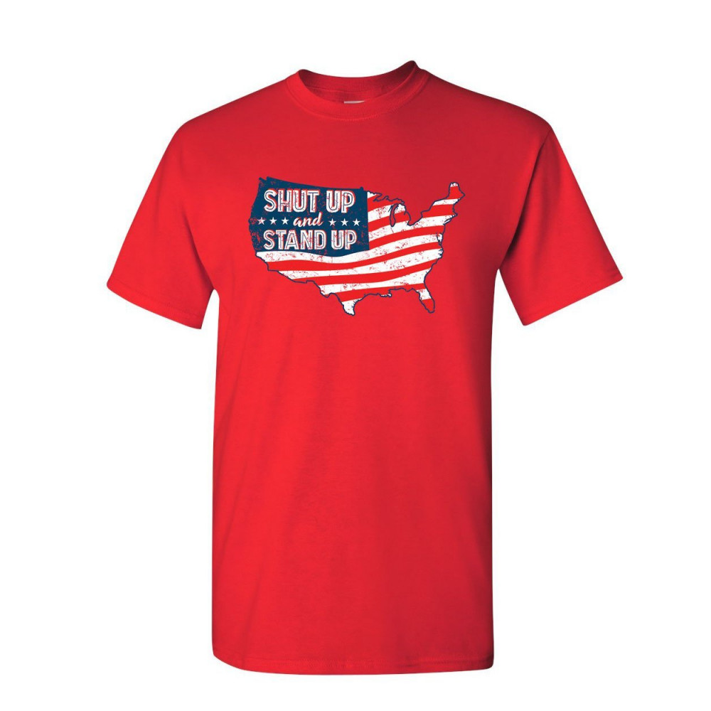 SHUT UP AND STAND UP t-shirt anthem usa map maga flag patriotic mens tee shirt red