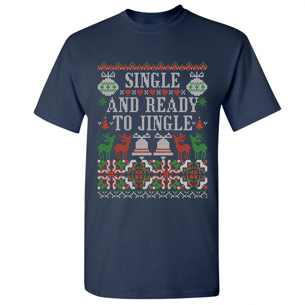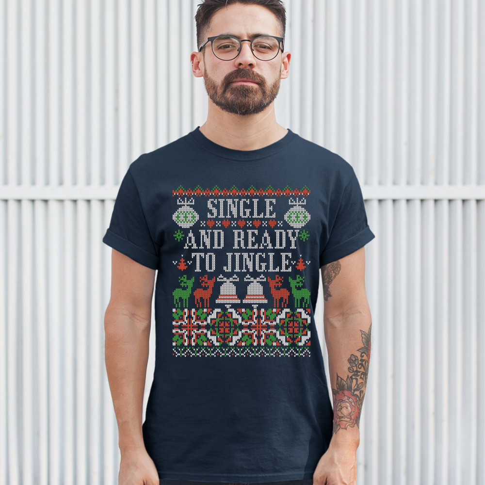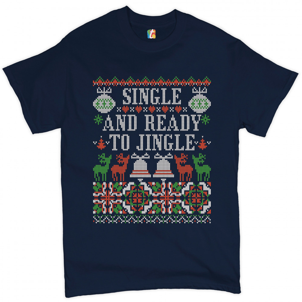 SINGLE AND READY TO JINGLE t-shirt merry christmas ugly sweater men's tee navy blue