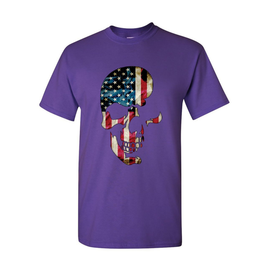 SKULL AMERICANA t-shirt patriotic 4th of july stars and stripes mens tee shirt purple