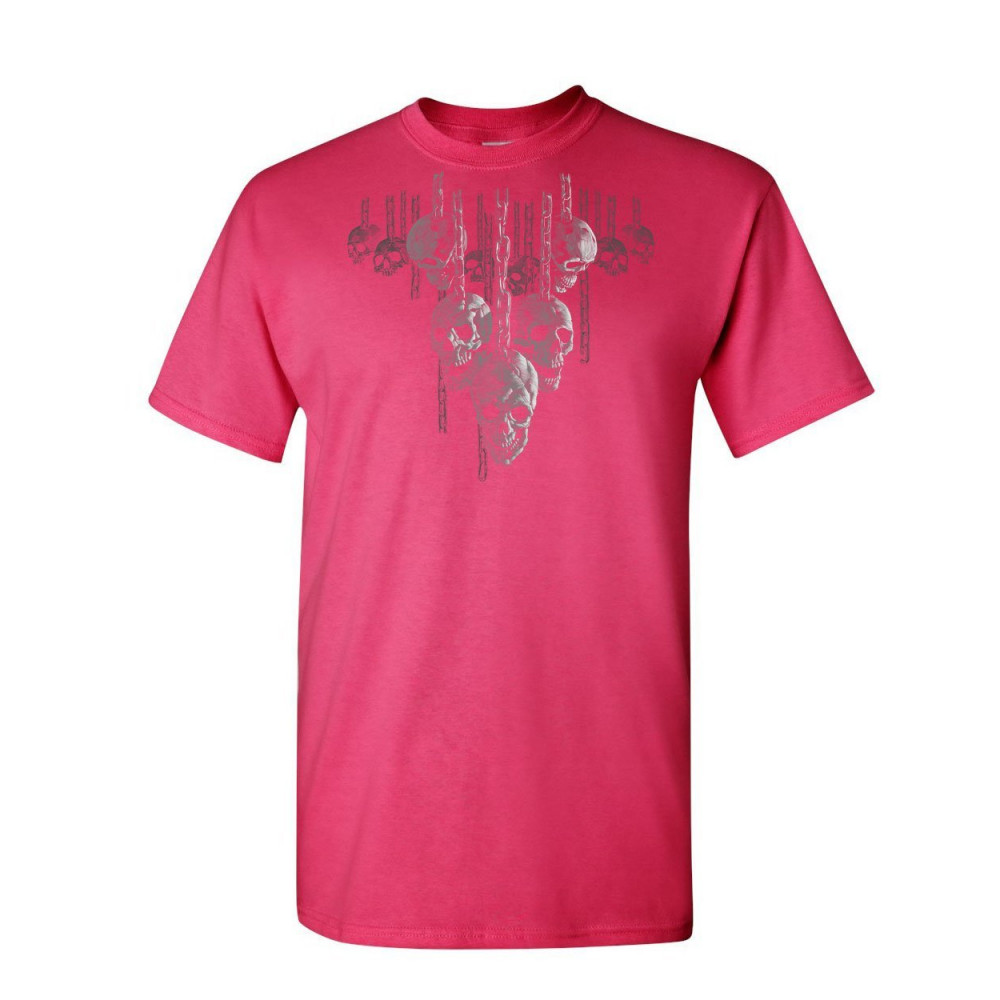 SKULLS HANGING ON CHAINS t-shirt death creepy scary hell devil mens tee shirt hot pink