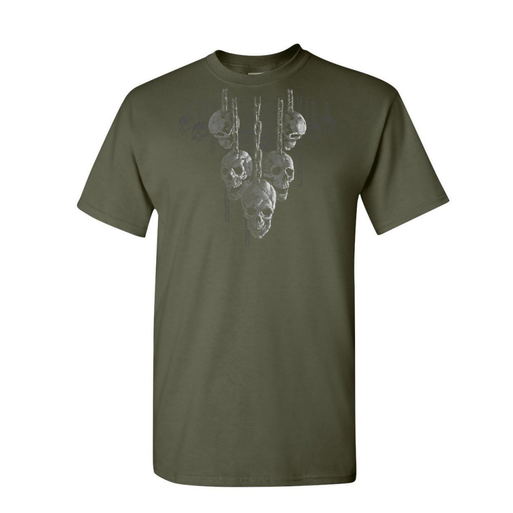 SKULLS HANGING ON CHAINS t-shirt death creepy scary hell devil mens tee shirt military green