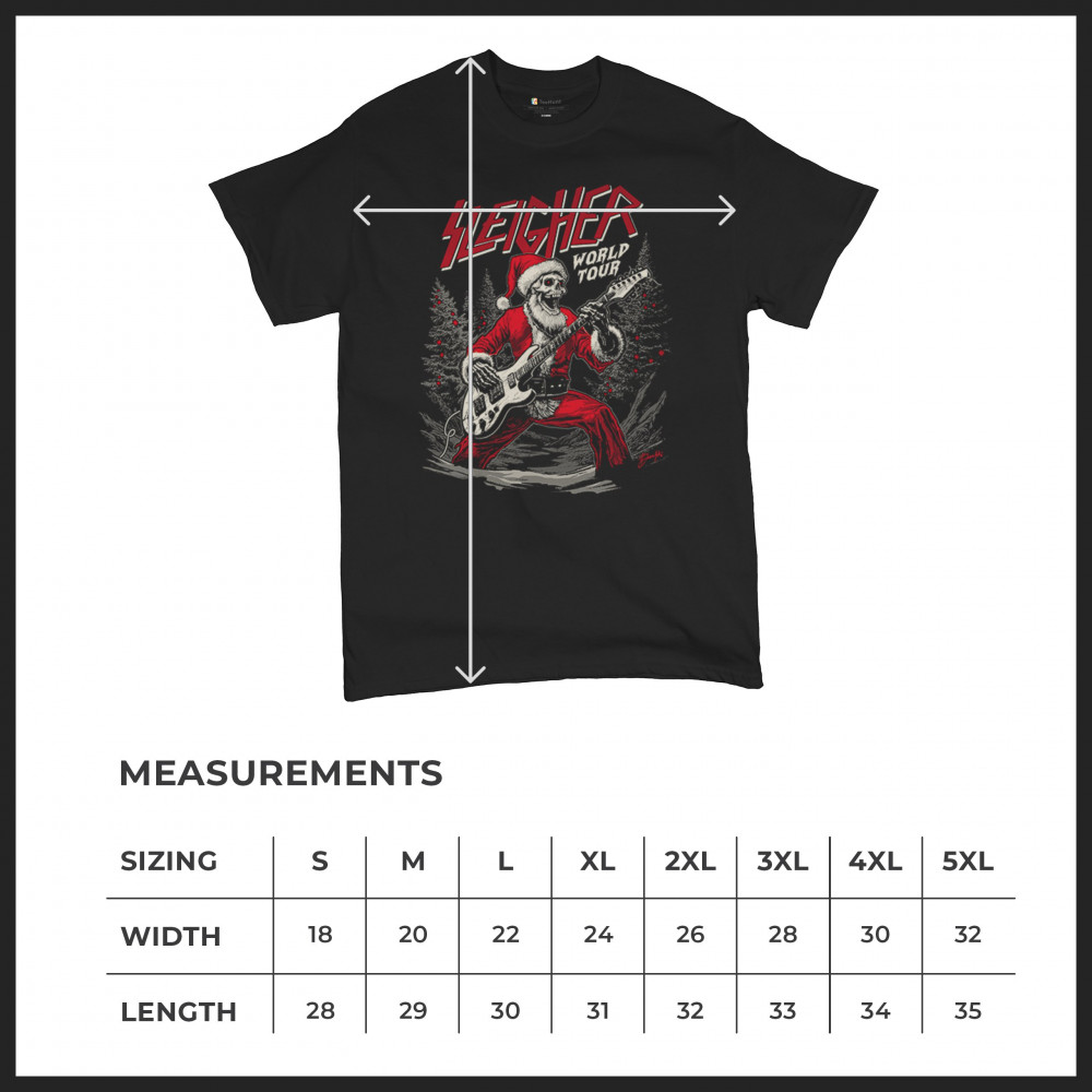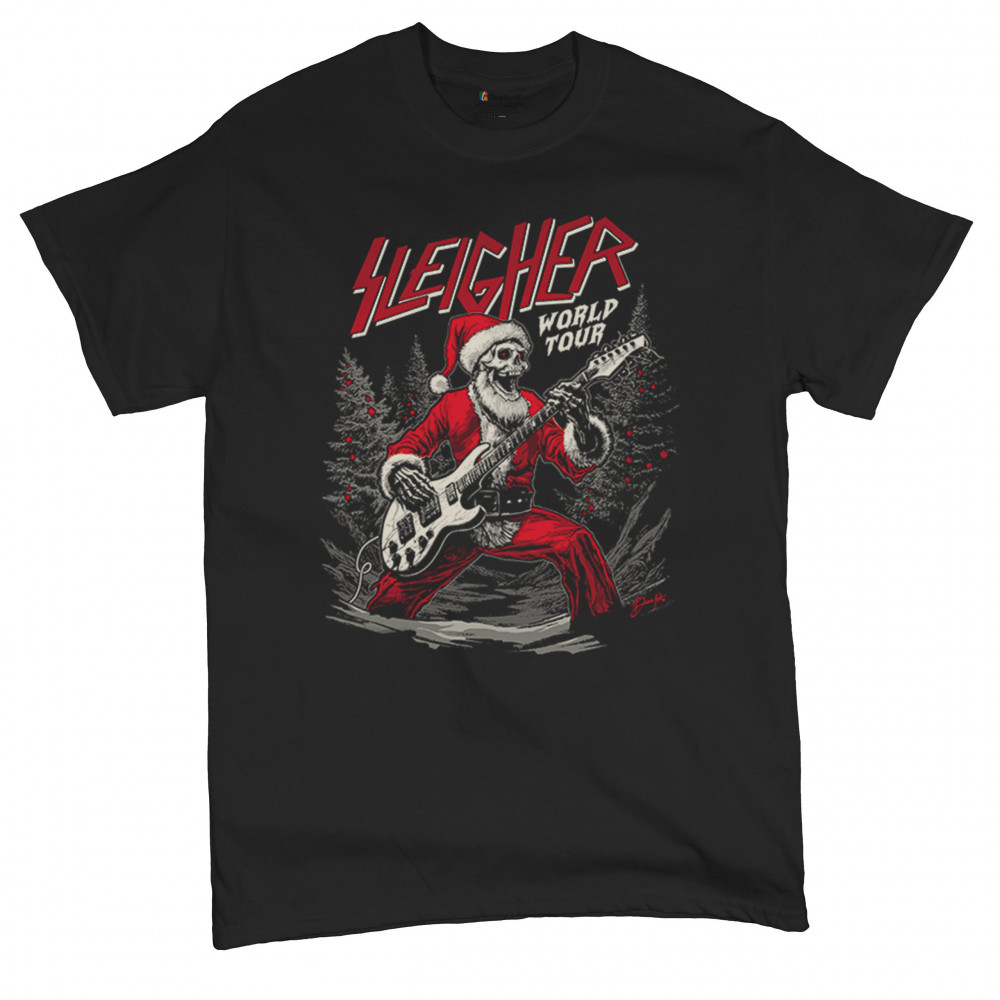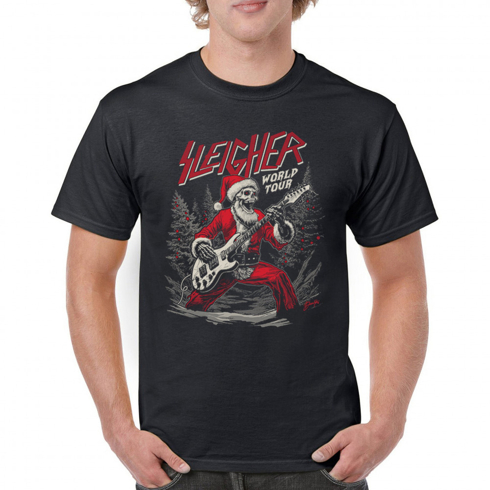 Bring the perfect mix of holiday cheer and rock ‘n’ roll to your wardrobe with the "Sleigher World Tour" design! Featuring a Santa skeleton rocking an electric guitar, this unique and edgy artwork is ideal for music lovers, ugly sweater contests, and festive gatherings. Celebrate Christmas with a rebellious twist and make every holiday event unforgettable!