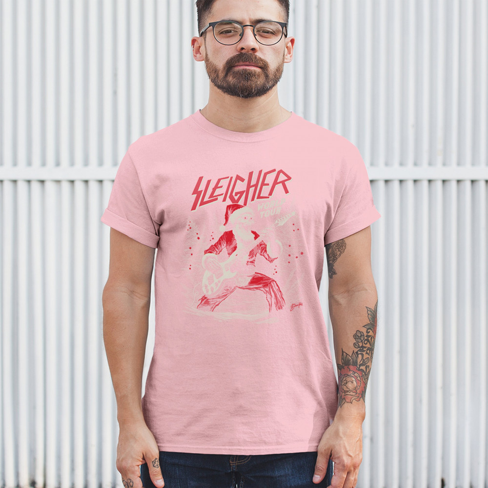Bring the perfect mix of holiday cheer and rock ‘n’ roll to your wardrobe with the "Sleigher World Tour" design! Featuring a Santa skeleton rocking an electric guitar, this unique and edgy artwork is ideal for music lovers, ugly sweater contests, and festive gatherings. Celebrate Christmas with a rebellious twist and make every holiday event unforgettable!