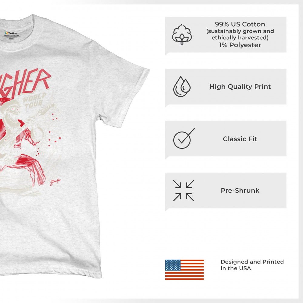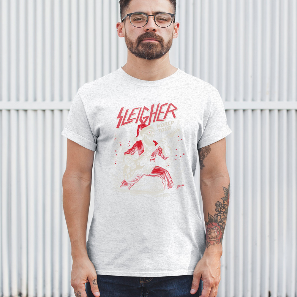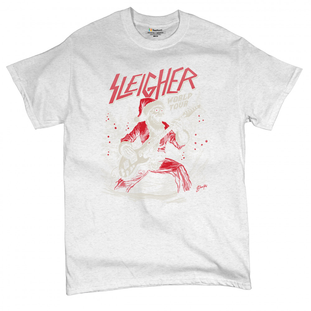Rock the holidays with the "Sleigher World Tour" Santa skeleton design. Perfect for music lovers, holiday parties, and bold Christmas fashion!