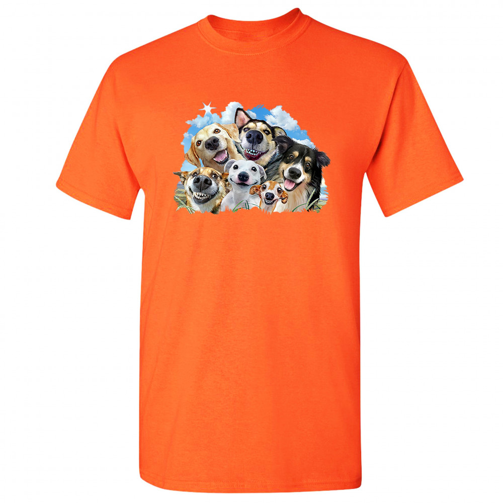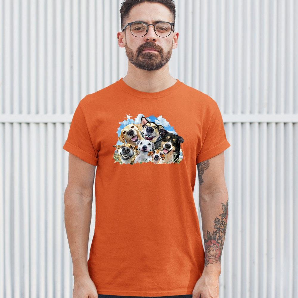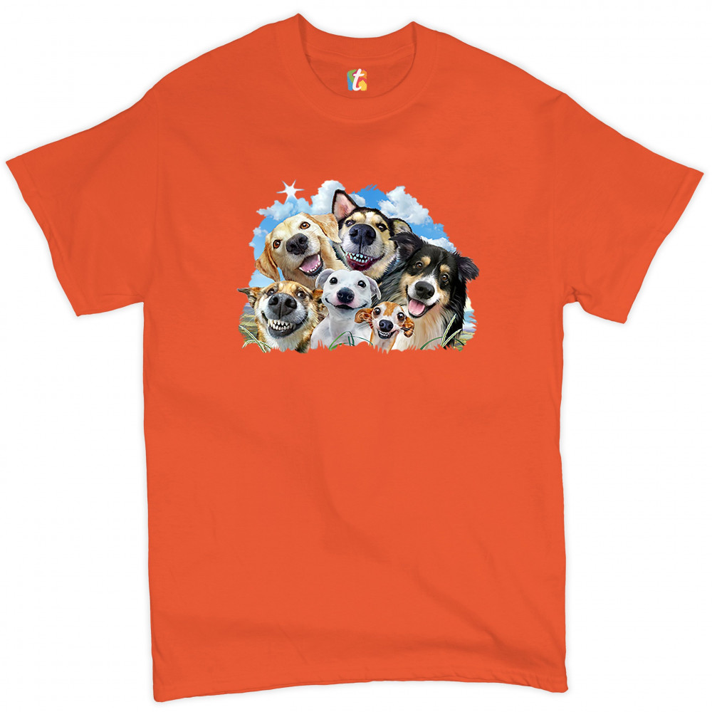 SMILING DOGS' SELFIE t-shirt funny animal dog lover cute puppies men's tee orange