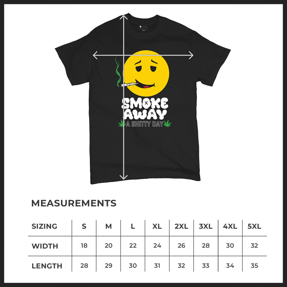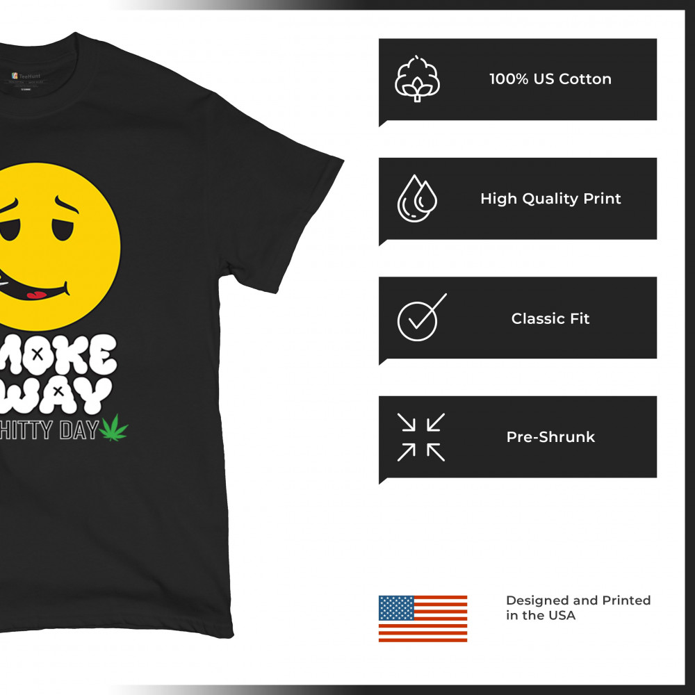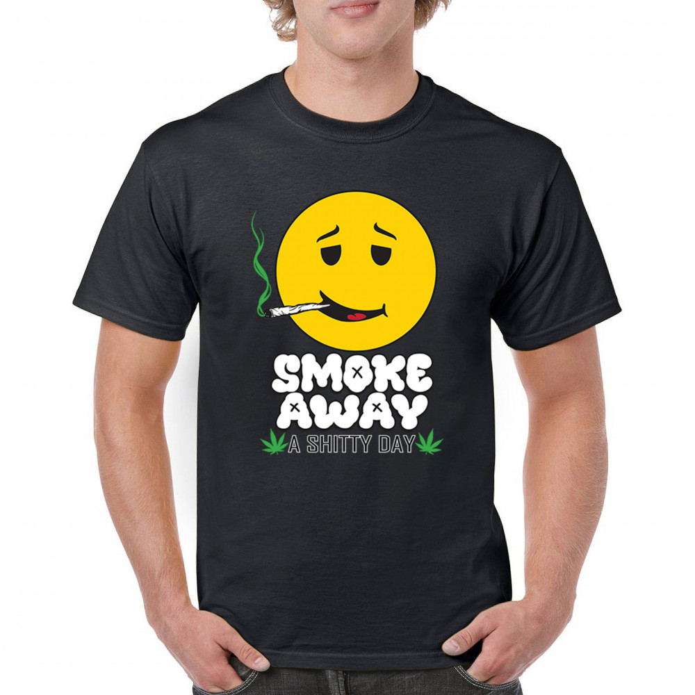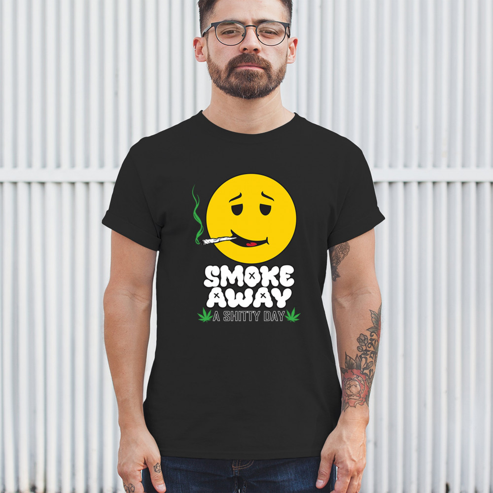 Smiley face with joint and “Smoke Away a Sh*tty Day†message. A perfect cannabis design for stoners, chillers, and sarcastic stress relief.