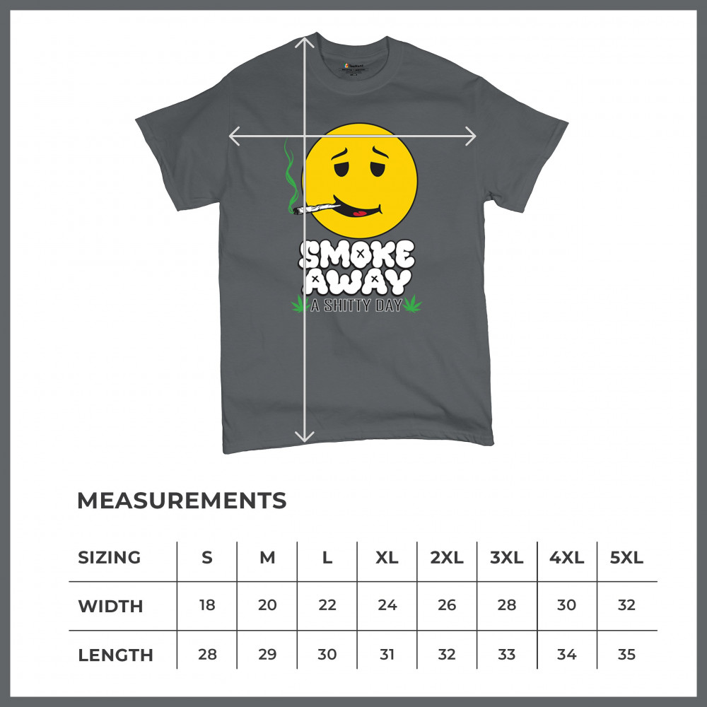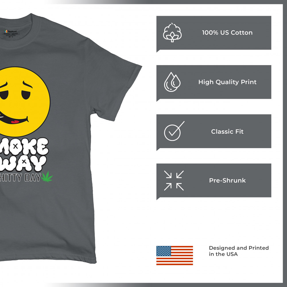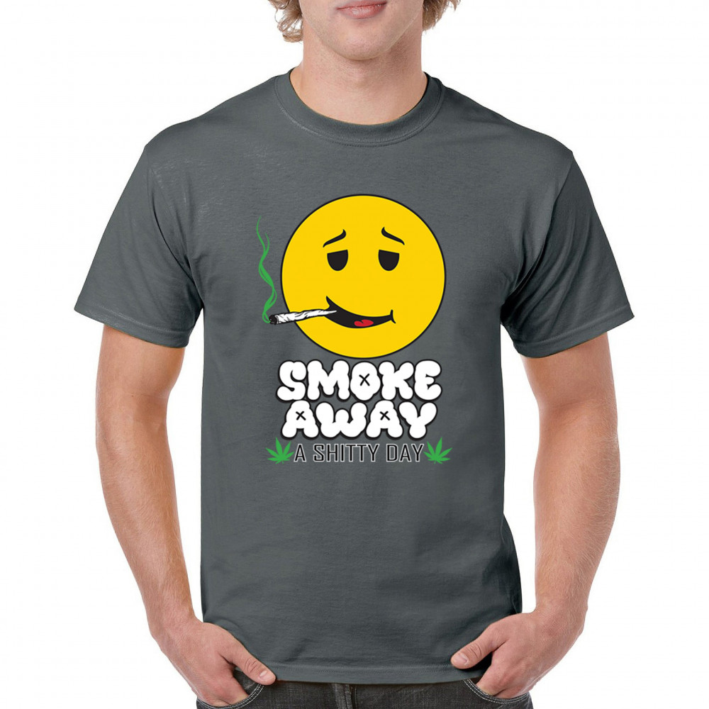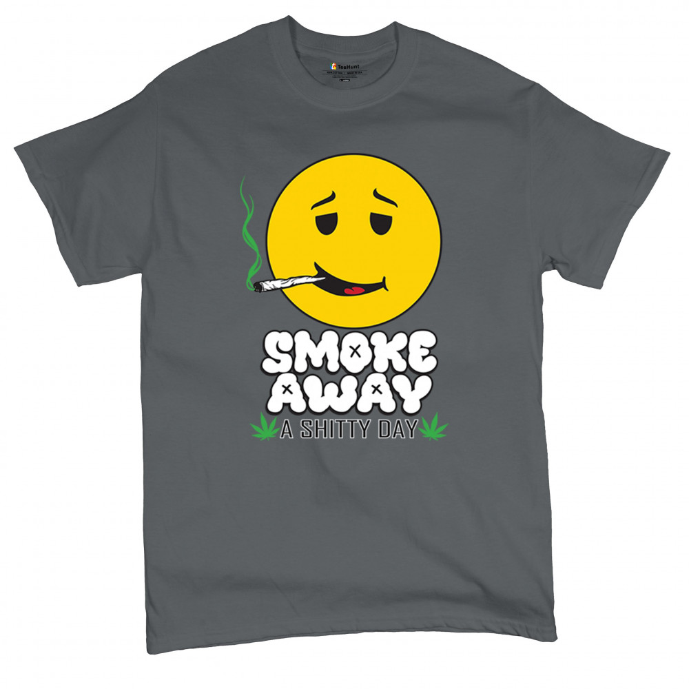 Smiley face with joint and “Smoke Away a Sh*tty Day†message. A perfect cannabis design for stoners, chillers, and sarcastic stress relief.