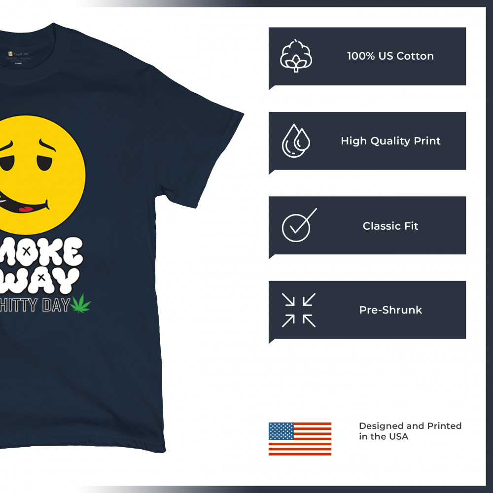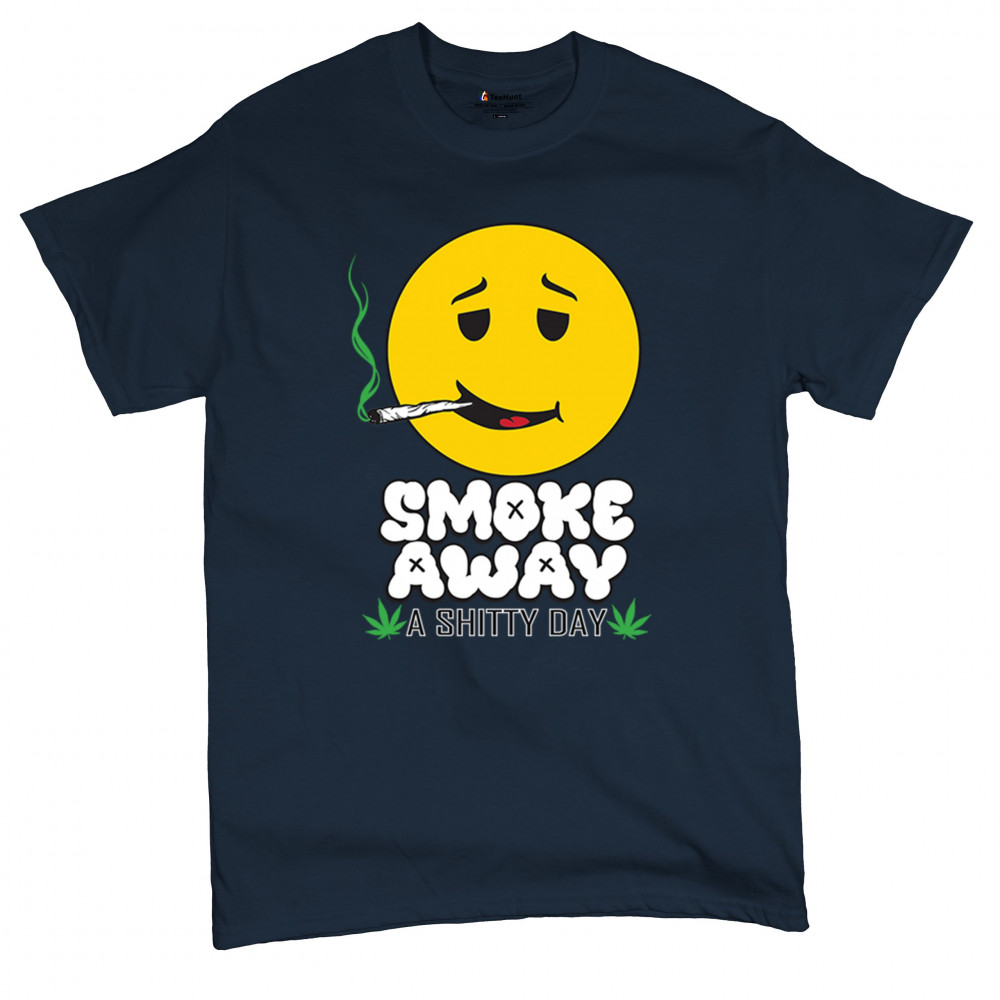 Smiley face with joint and “Smoke Away a Sh*tty Day†message. A perfect cannabis design for stoners, chillers, and sarcastic stress relief.