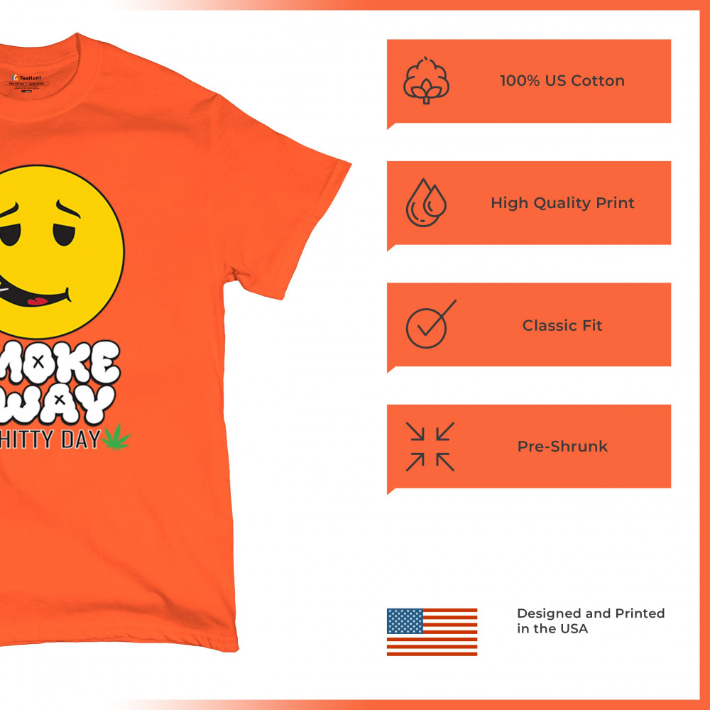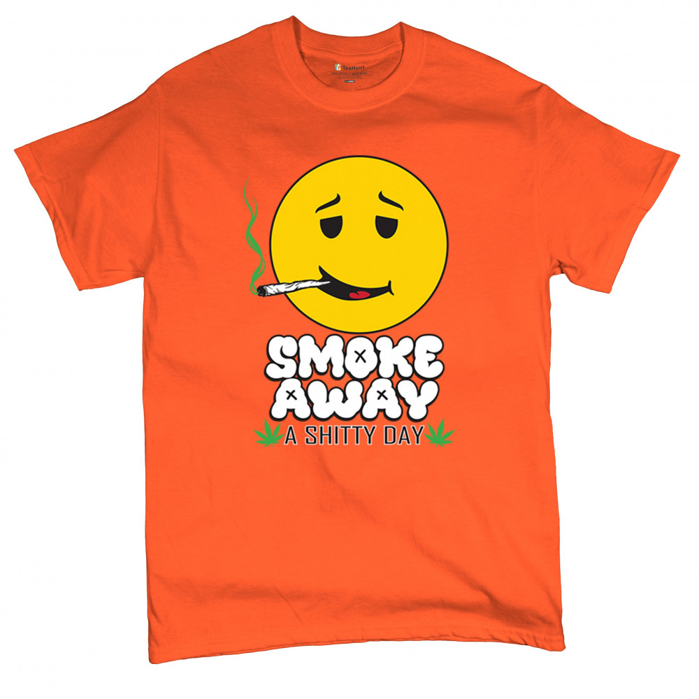 Smiley face with joint and “Smoke Away a Sh*tty Day†message. A perfect cannabis design for stoners, chillers, and sarcastic stress relief.