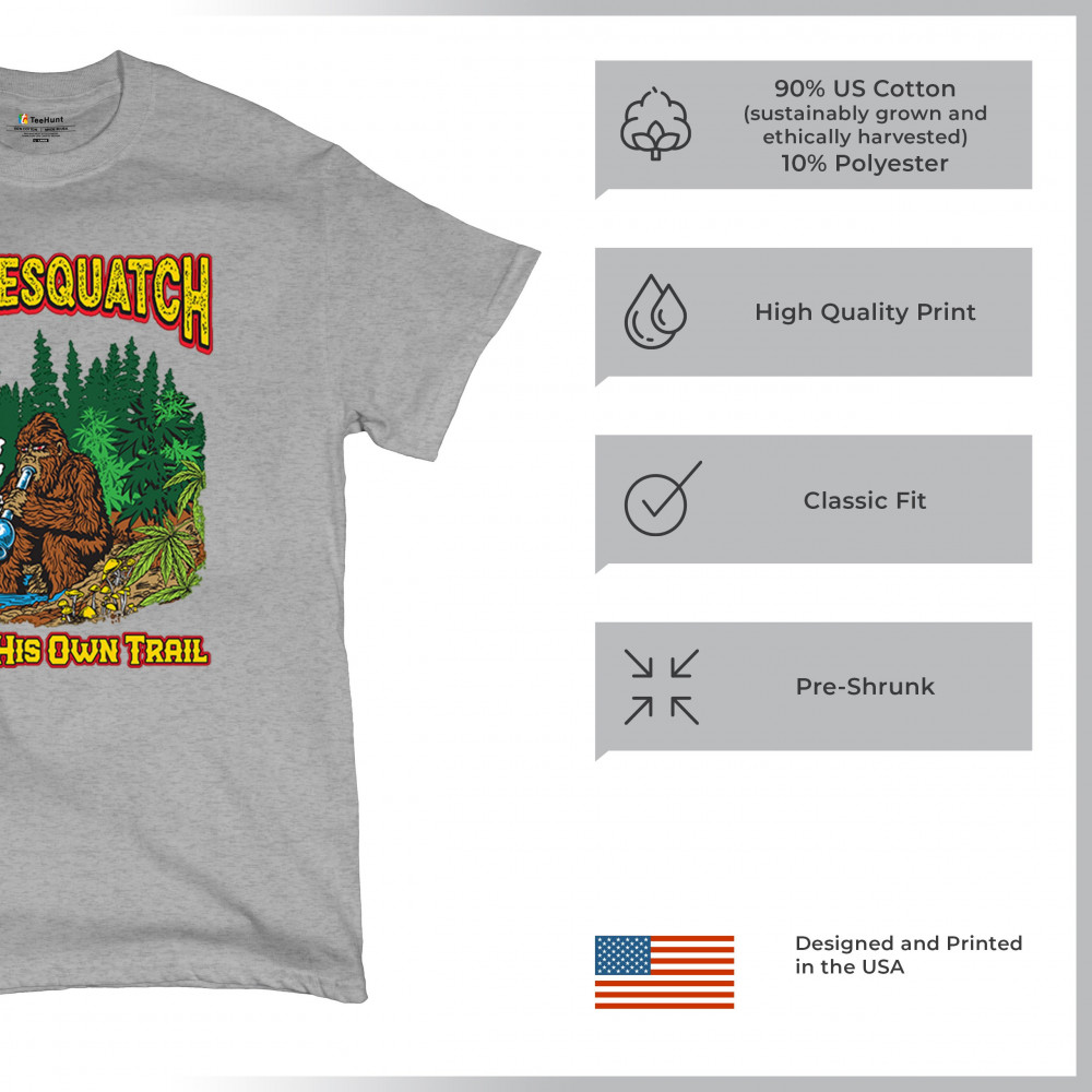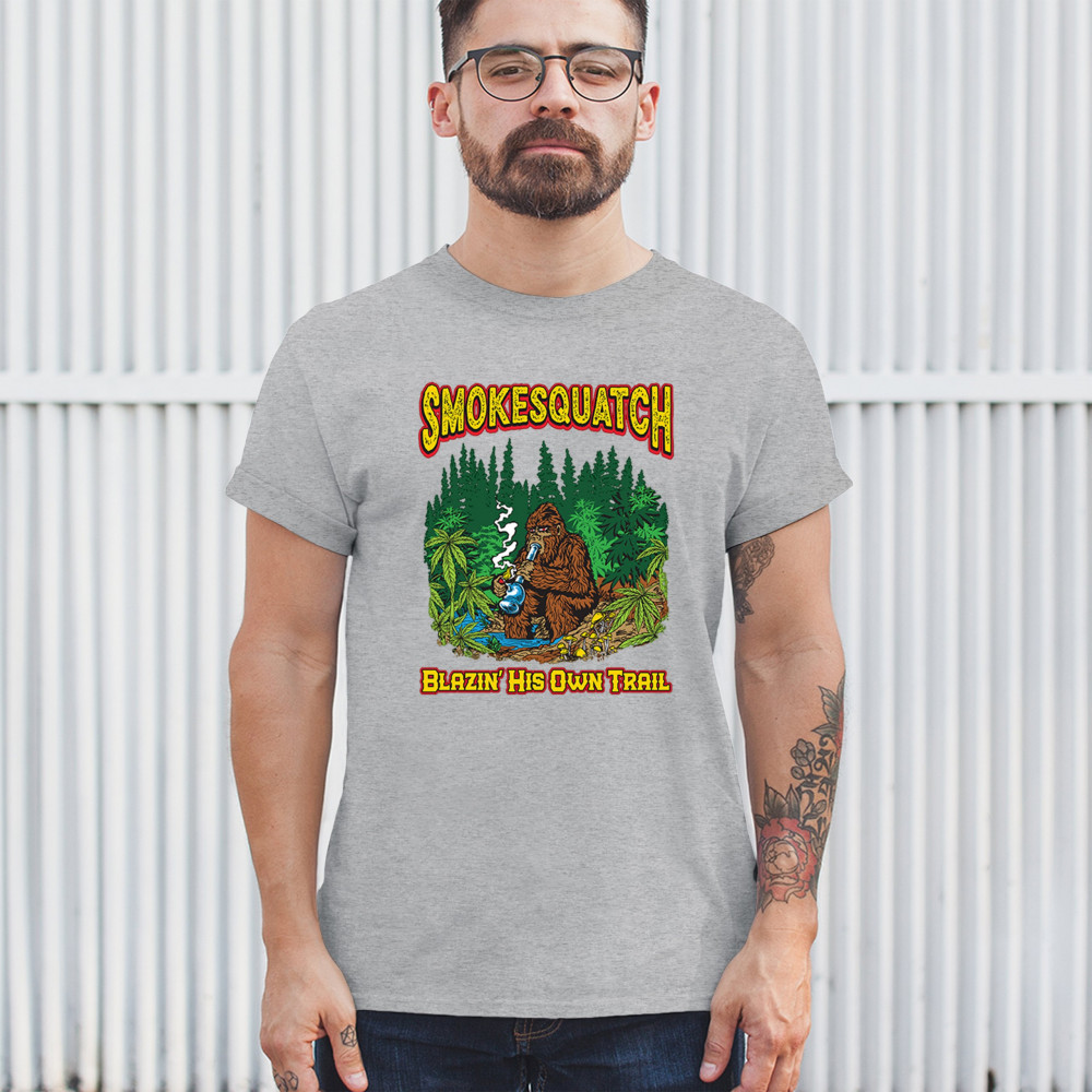Smokesquatch blazes through the cannabis scene with this hilarious design featuring Bigfoot smoking in the woods. Perfect for cryptid fans, marijuana enthusiasts, 420 festival goers, and lovers of stoner humor. This design fuses wilderness myth with cannabis culture for a bold and funny forest-themed statement.