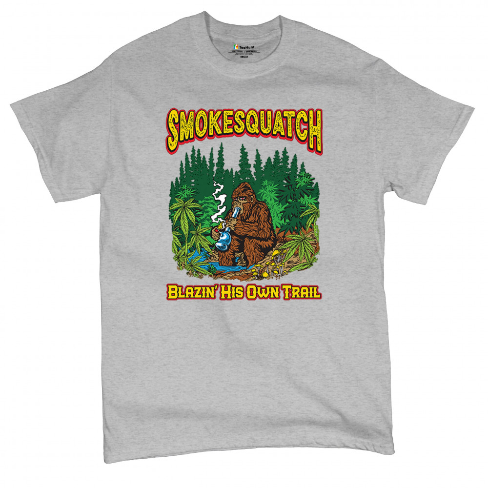 Funny Bigfoot stoner design for cannabis lovers, cryptid fans, and 420 culture. Smokesquatch blazes through forest vibes and weed humor.