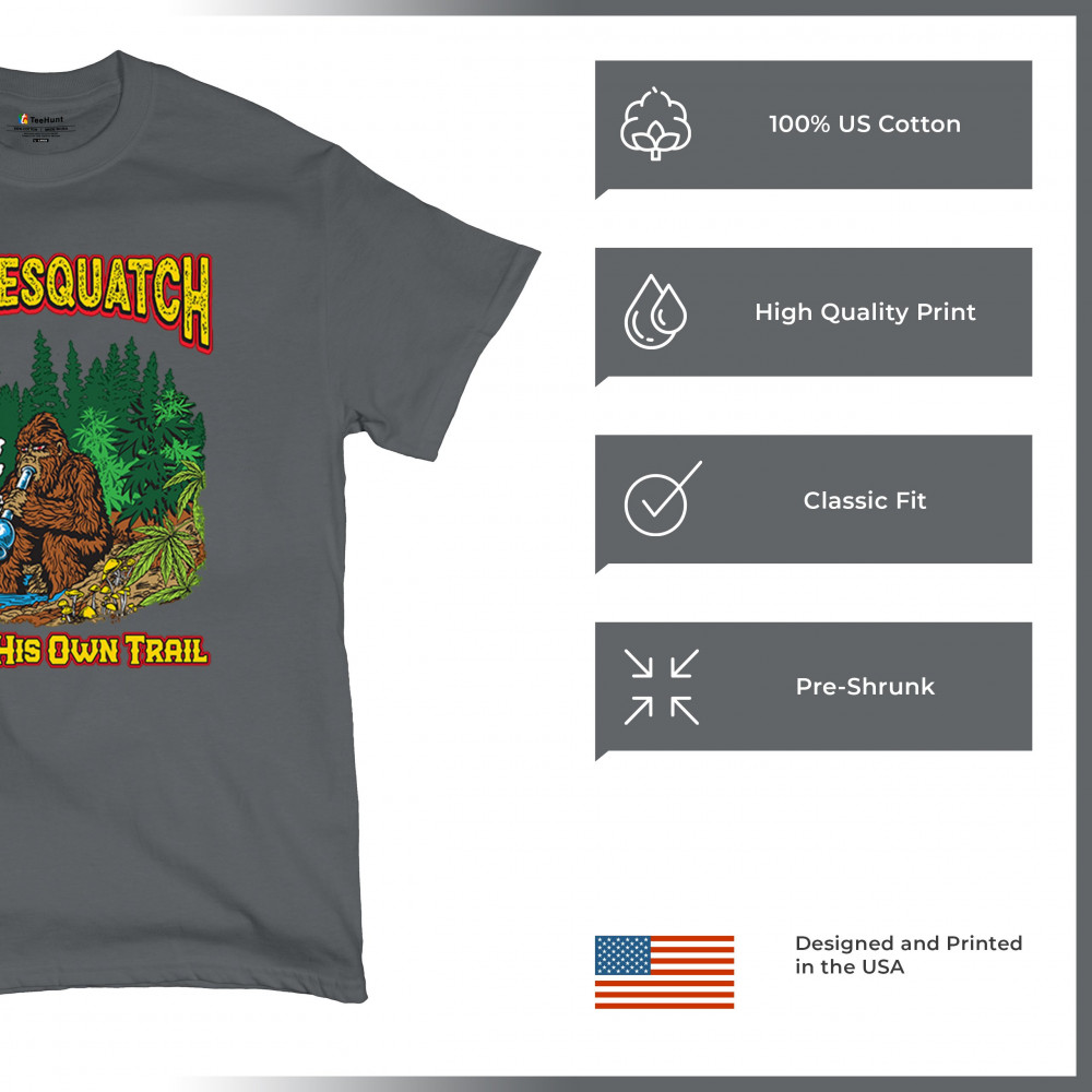 Smokesquatch blazes through the cannabis scene with this hilarious design featuring Bigfoot smoking in the woods. Perfect for cryptid fans, marijuana enthusiasts, 420 festival goers, and lovers of stoner humor. This design fuses wilderness myth with cannabis culture for a bold and funny forest-themed statement.