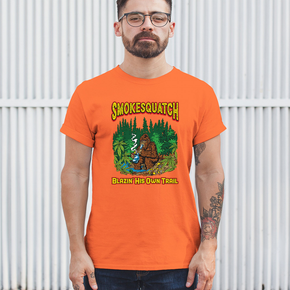 Funny Bigfoot stoner design for cannabis lovers, cryptid fans, and 420 culture. Smokesquatch blazes through forest vibes and weed humor.