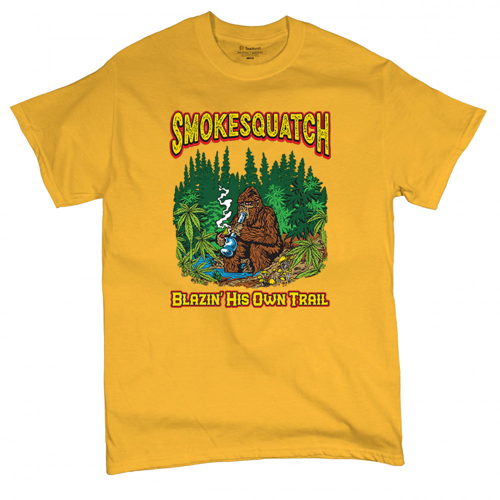 Funny Bigfoot stoner design for cannabis lovers, cryptid fans, and 420 culture. Smokesquatch blazes through forest vibes and weed humor.
