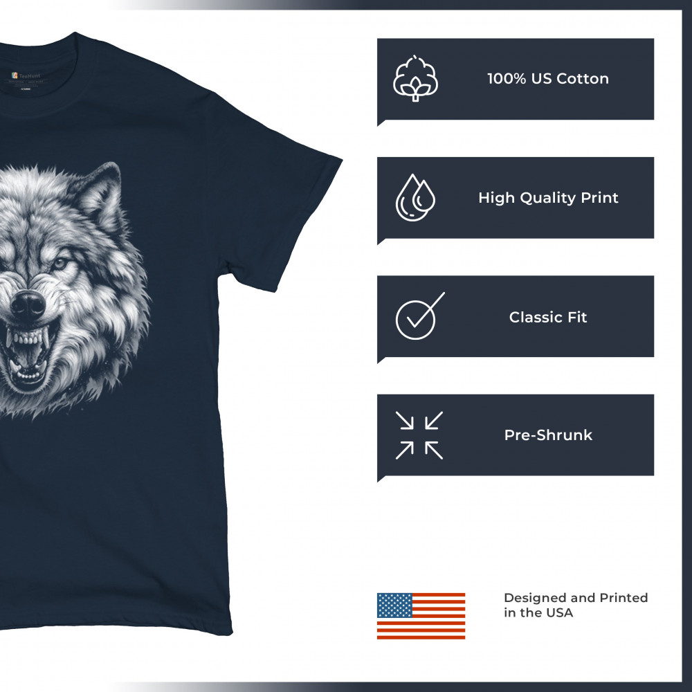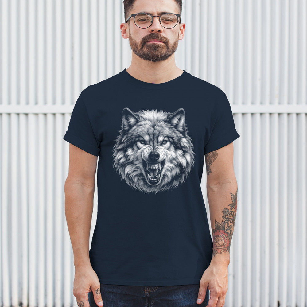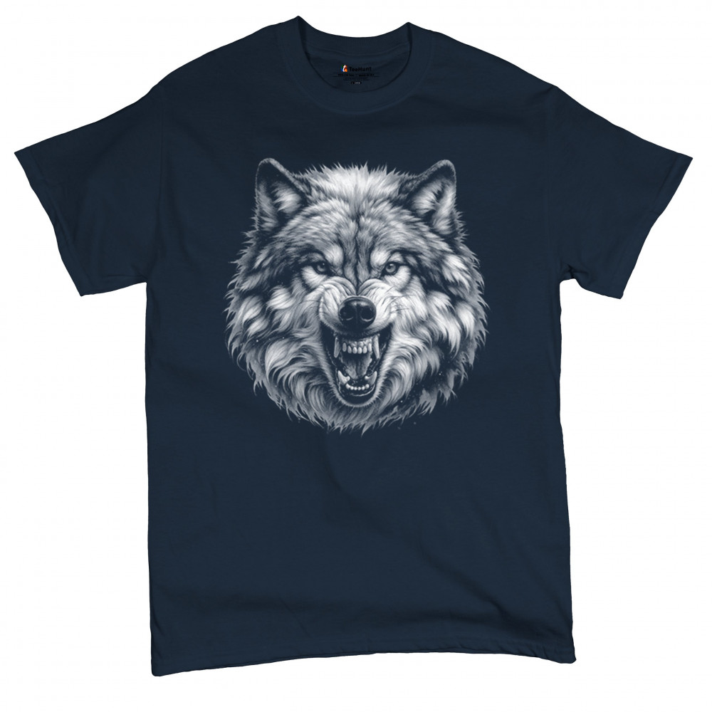 Snarling wolf design with fierce detail and wild spirit. Great for hunters, survivalists, and outdoor alpha energy wear.