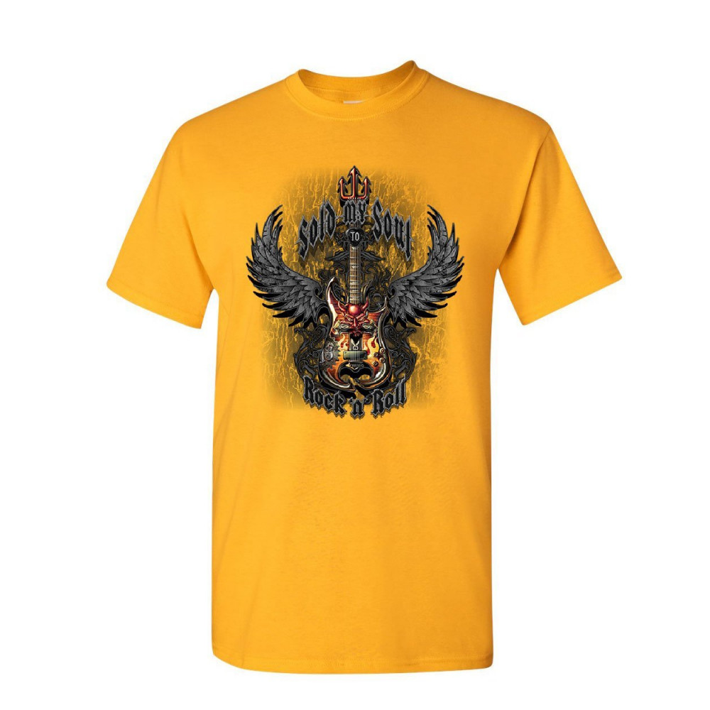 SOLD MY SOUL TO ROCK & ROLL t-shirt demon guitar wings trident mens tee shirt yellow