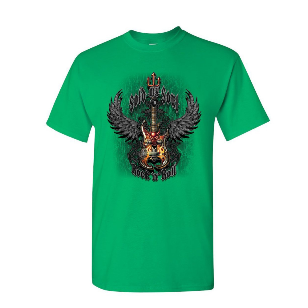 SOLD MY SOUL TO ROCK & ROLL t-shirt demon guitar wings trident mens tee shirt green