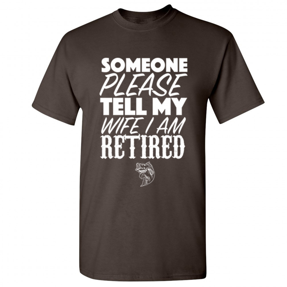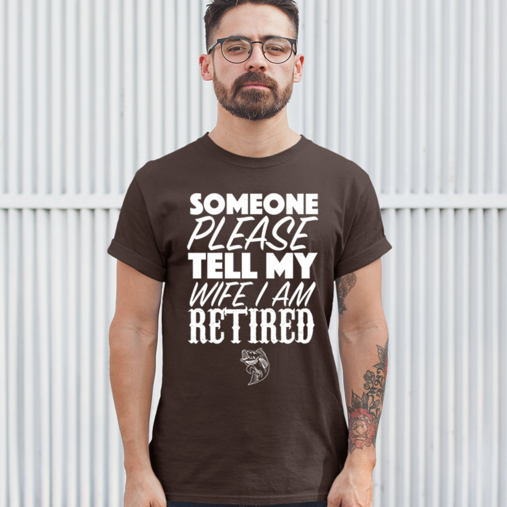 SOMEONE PLEASE TELL MY WIFE I AM RETIRED t-shirt father's day men's tee brown