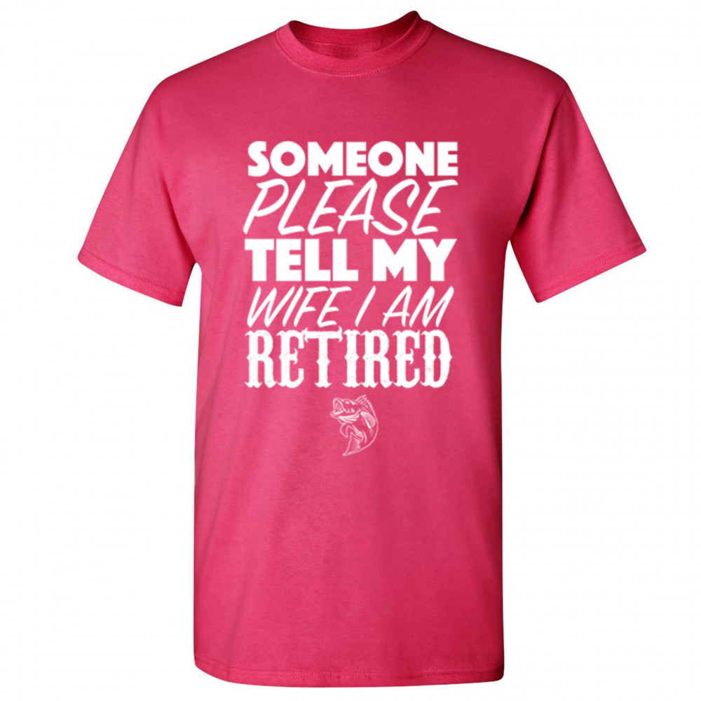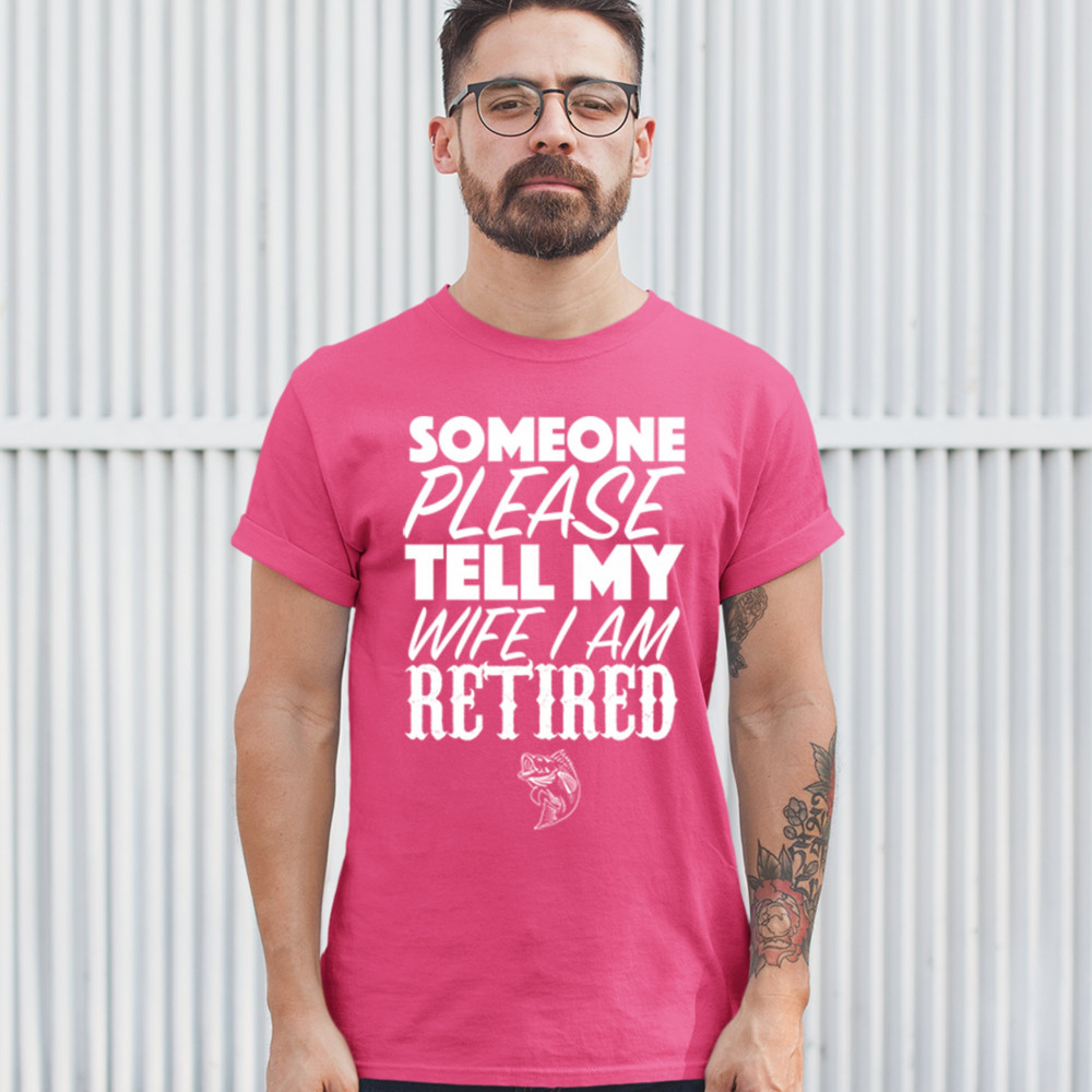 SOMEONE PLEASE TELL MY WIFE I AM RETIRED t-shirt father's day men's tee hot pink