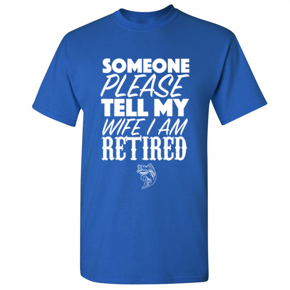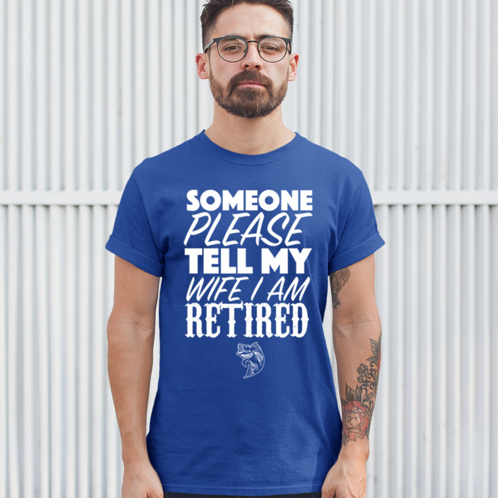 SOMEONE PLEASE TELL MY WIFE I AM RETIRED t-shirt father's day men's tee royal blue