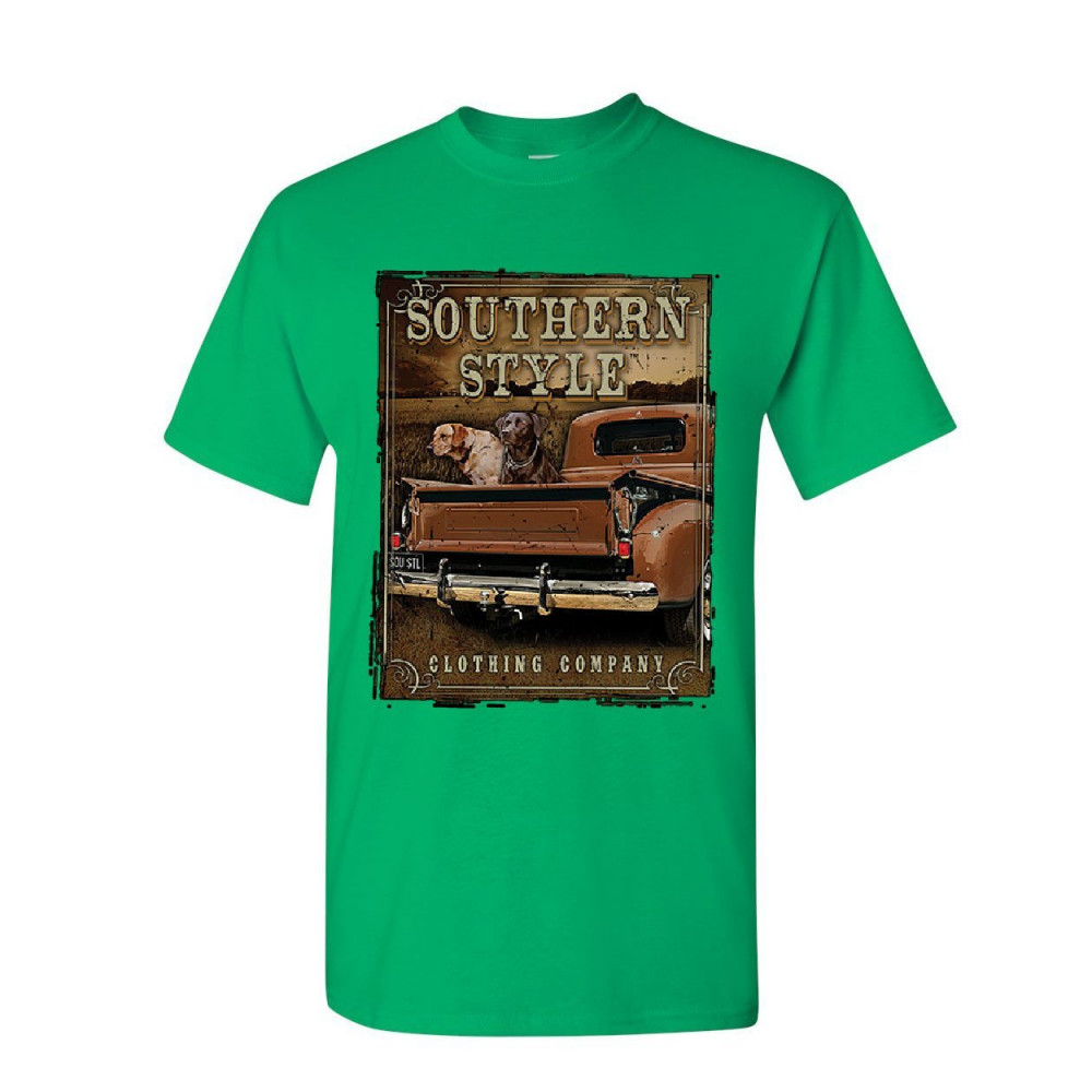 SOUTHERN STYLE t-shirt truck country farm labrador retriever mens tee shirt green