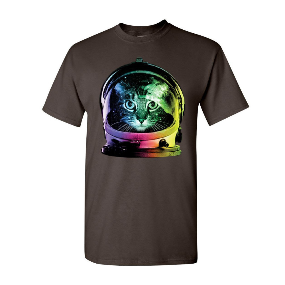 SPACE CAT t-shirt astronaut kitten neon galaxy tee shirt brown