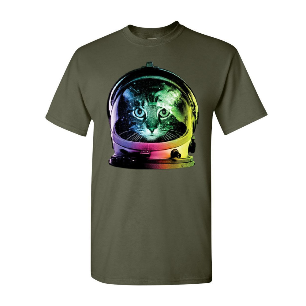 SPACE CAT t-shirt astronaut kitten neon galaxy tee shirt military green