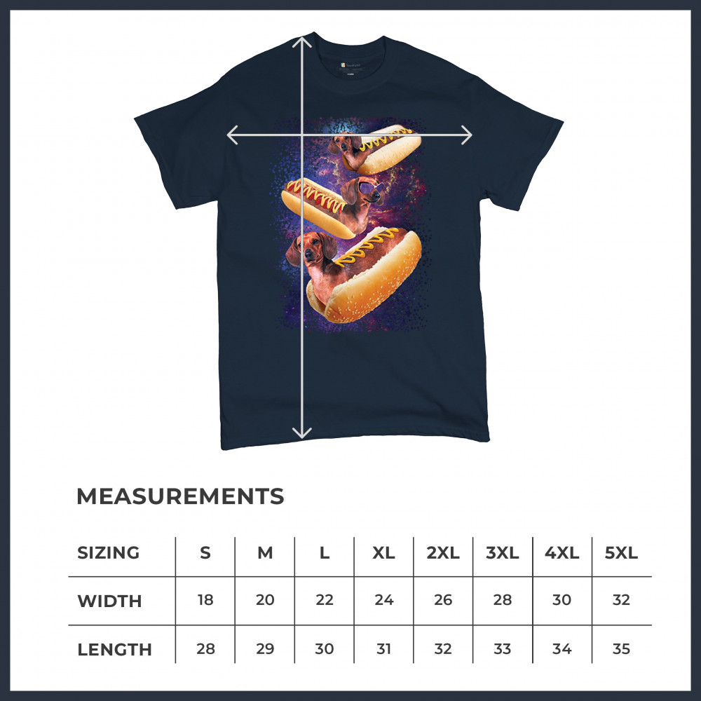 Add a dash of humor to your wardrobe with our unique design featuring adorable dachshunds as hotdogs in a cosmic setting. This playful graphic is perfect for animal lovers and those with a quirky sense of style. The vibrant colors and detailed illustration ensure you stand out in any crowd. Made from premium materials, this tee offers both comfort and durability, making it ideal for everyday wear or special occasions. Embrace your love for dogs and space with this fun and imaginative design.