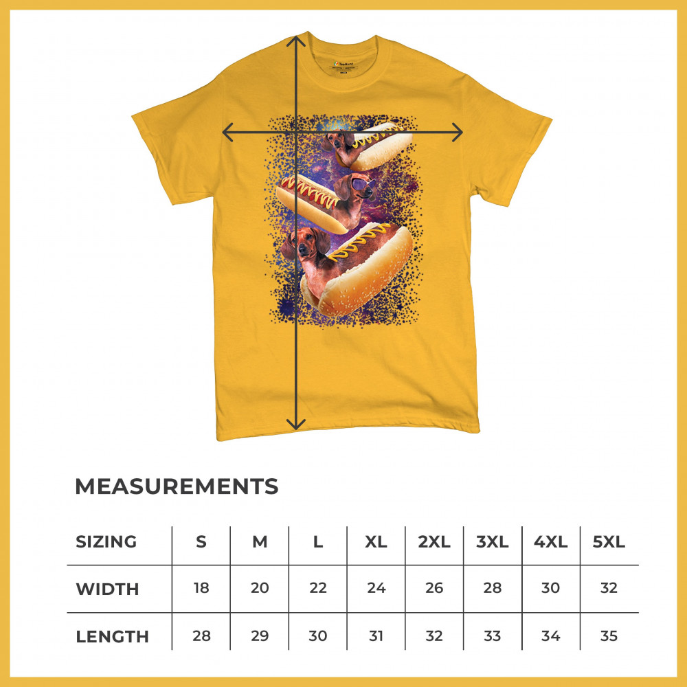 Add a dash of humor to your wardrobe with our unique design featuring adorable dachshunds as hotdogs in a cosmic setting. This playful graphic is perfect for animal lovers and those with a quirky sense of style. The vibrant colors and detailed illustration ensure you stand out in any crowd. Made from premium materials, this tee offers both comfort and durability, making it ideal for everyday wear or special occasions. Embrace your love for dogs and space with this fun and imaginative design.