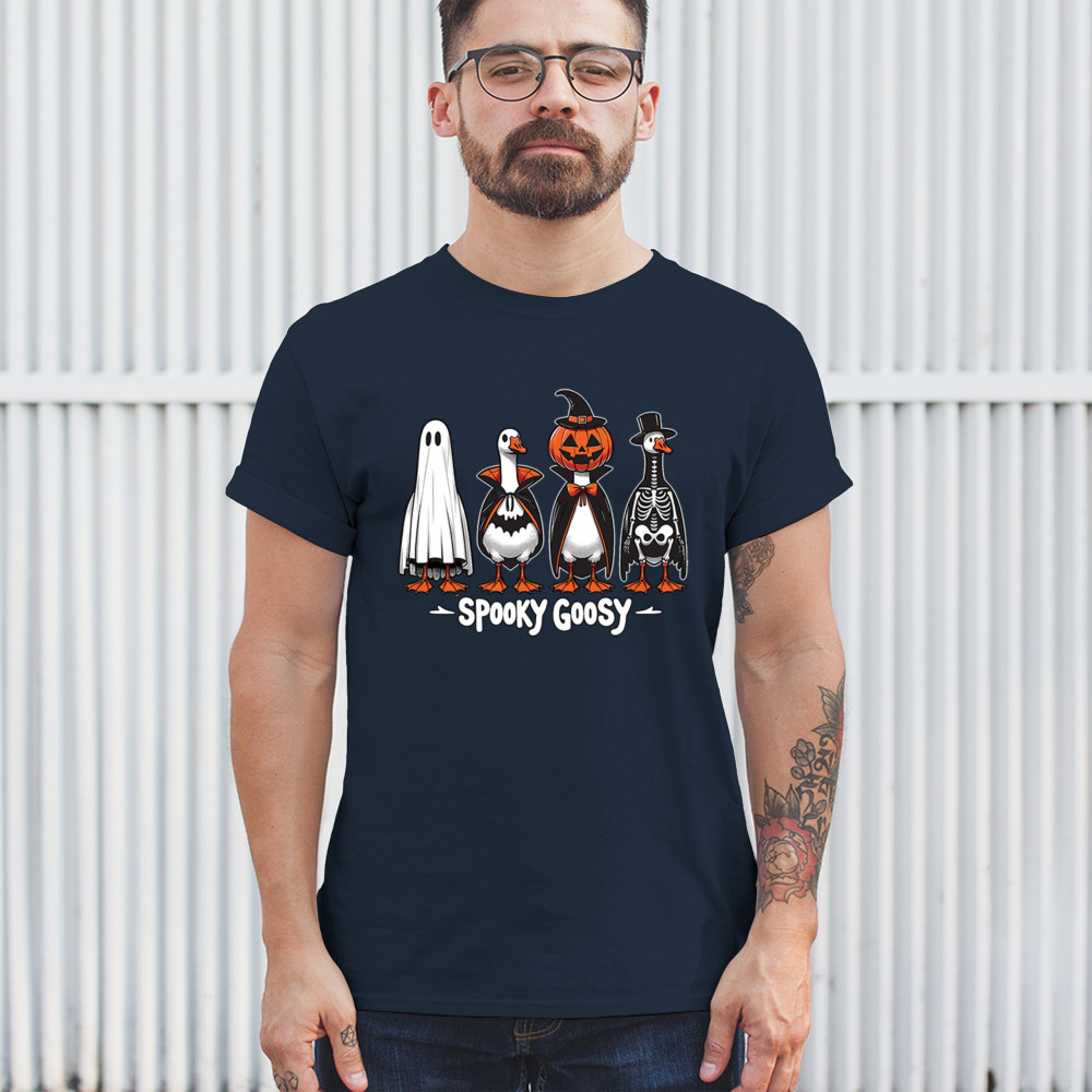 Bring the spooky fun to life with this Spooky Goosy Halloween design featuring geese in witch, skeleton, vampire, and pumpkin costumes. Perfect for haunted house nights, October 31 trick-or-treat events, or monster mash gatherings. A funny and festive choice for goose lovers and Halloween enthusiasts who enjoy creepy costume vibes.