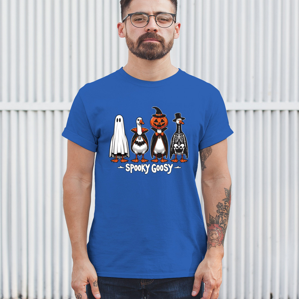 Bring the spooky fun to life with this Spooky Goosy Halloween design featuring geese in witch, skeleton, vampire, and pumpkin costumes. Perfect for haunted house nights, October 31 trick-or-treat events, or monster mash gatherings. A funny and festive choice for goose lovers and Halloween enthusiasts who enjoy creepy costume vibes.