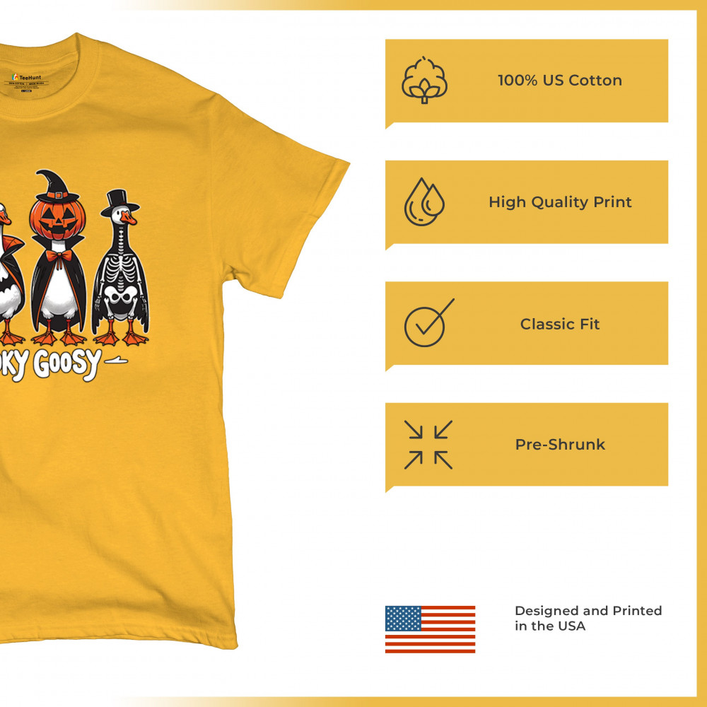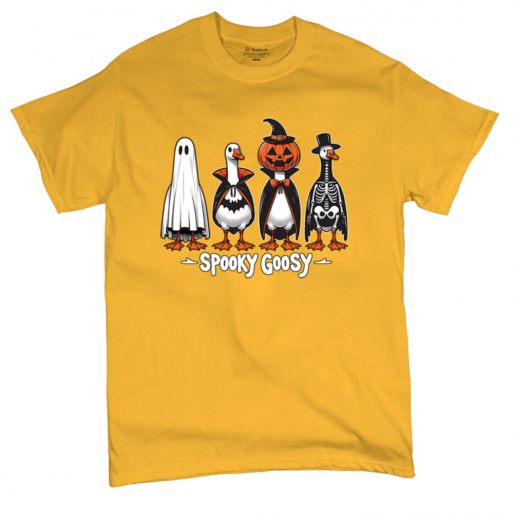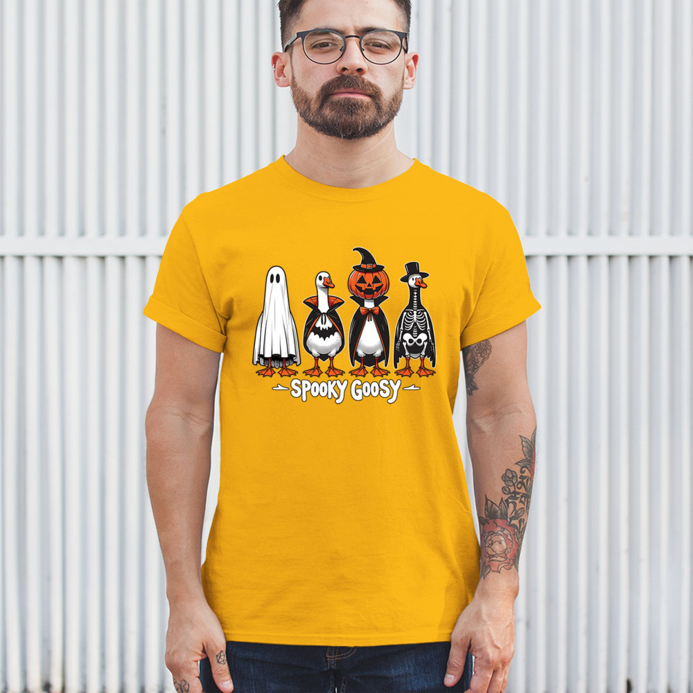 Bring the spooky fun to life with this Spooky Goosy Halloween design featuring geese in witch, skeleton, vampire, and pumpkin costumes. Perfect for haunted house nights, October 31 trick-or-treat events, or monster mash gatherings. A funny and festive choice for goose lovers and Halloween enthusiasts who enjoy creepy costume vibes.