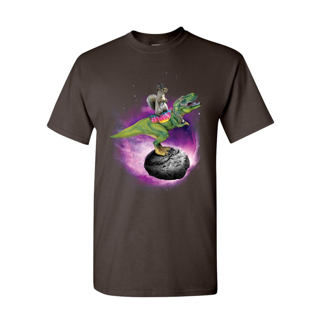 SQUIRREL RIDING T-REX RIDING ASTEROID t-shirt funny space weird mens tee shirt brown