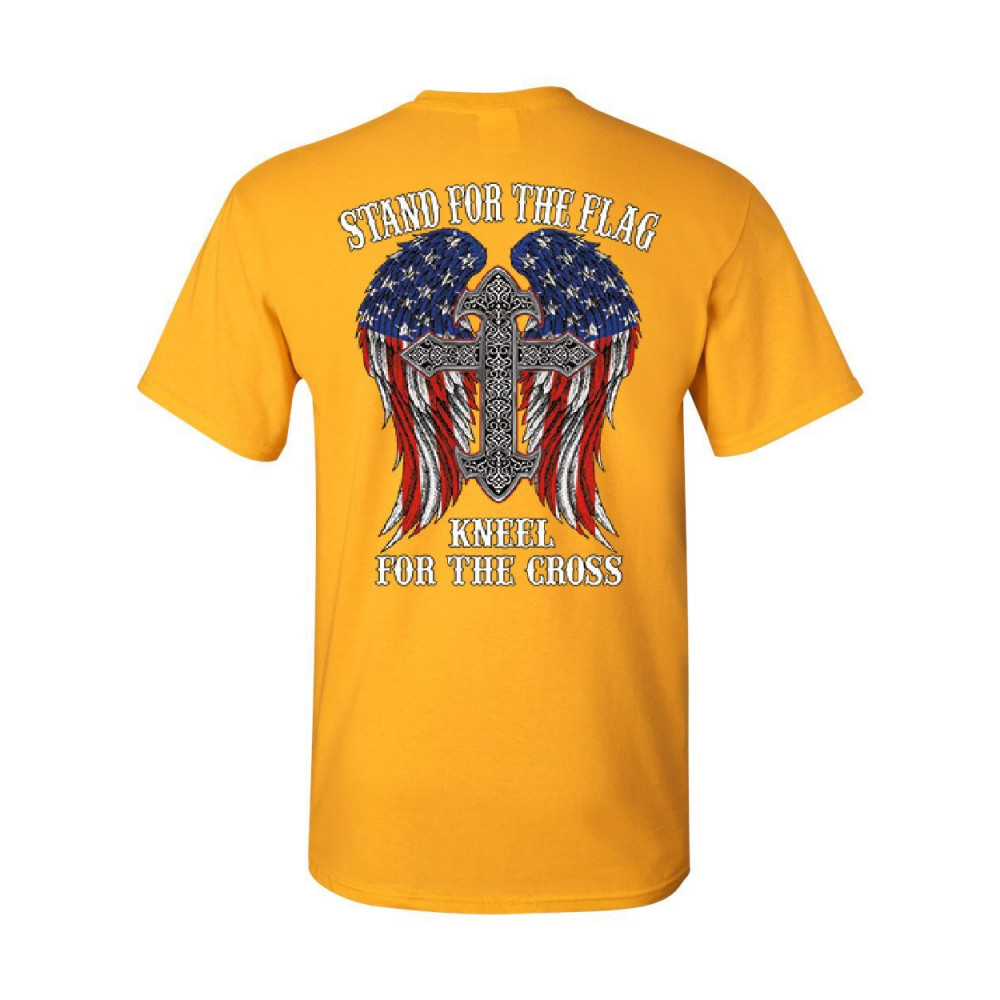 STAND FOR THE FLAG KNEEL FOR THE CROSS t-shirt patriot political mens tee shirt yellow