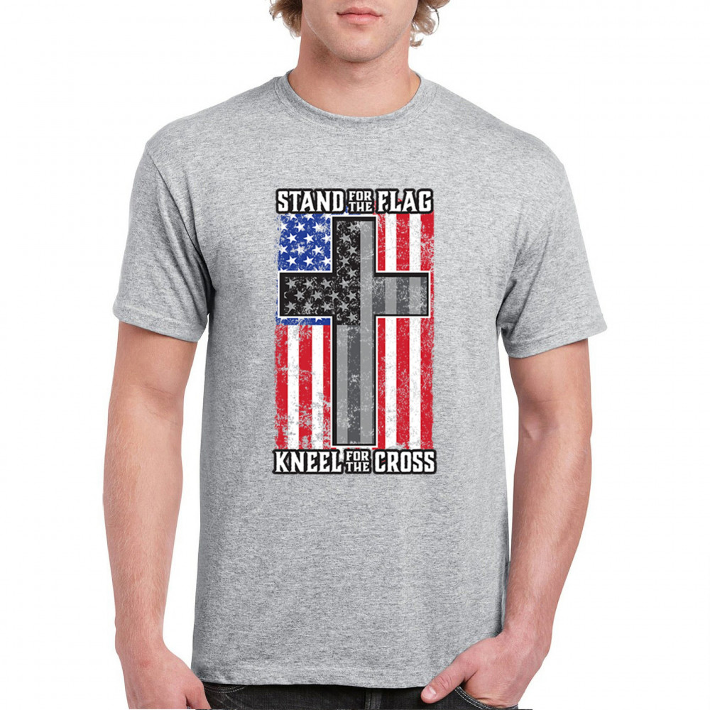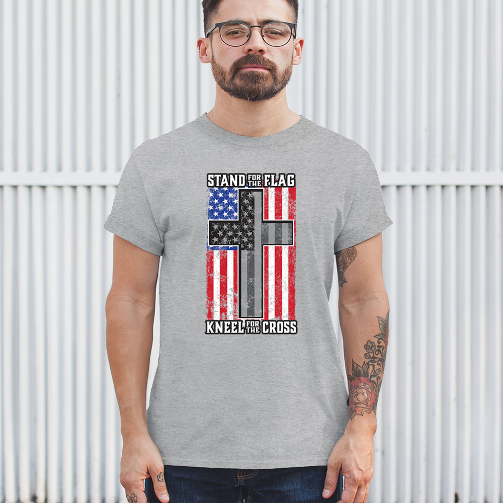 Embrace your identity as an American patriot and devout Christian with our Stand for the Flag Kneel for the Cross tee, a powerful testament to your values. Crafted with the American flag and the sacred cross, this design serves as both Trump merchandise and a symbol of unwavering faith. Whether you're a veteran, active military member, or simply a defender of liberty, this shirt proudly upholds the principles of the Second Amendment while honoring the legacy of Jesus Christ.