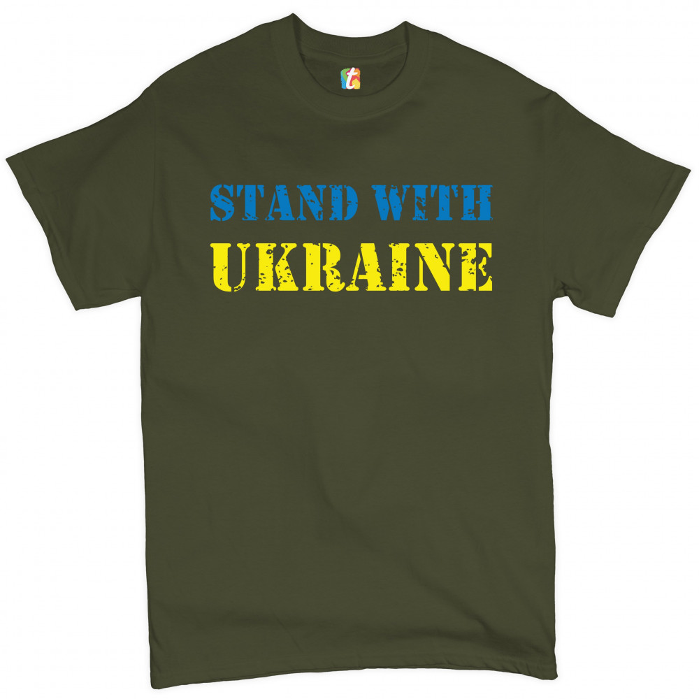 STAND WITH UKRAINE t-shirt stop war support ukrainians men's tee military green