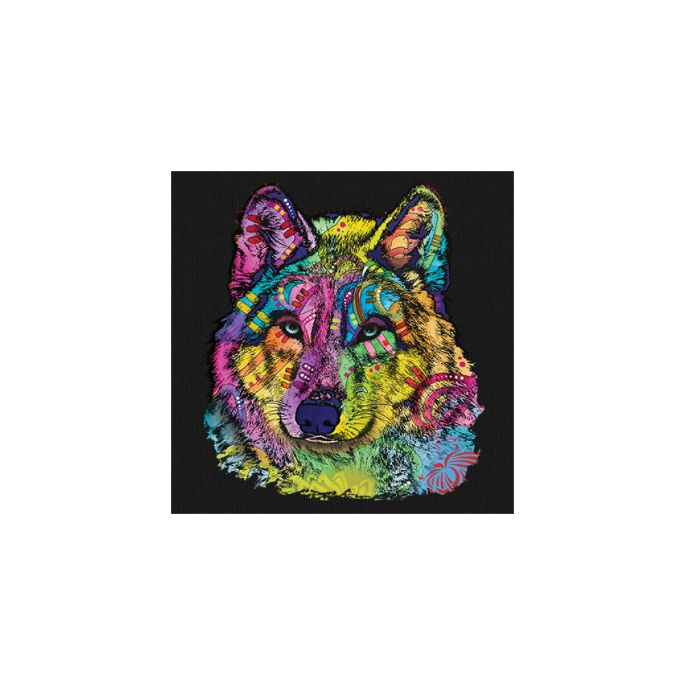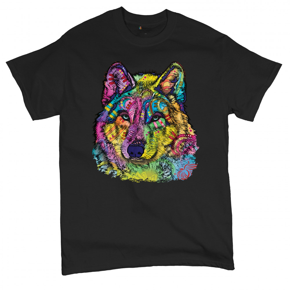 STARE OF THE WOLF t-shirt dean russo colorful neon animal art men's tee black