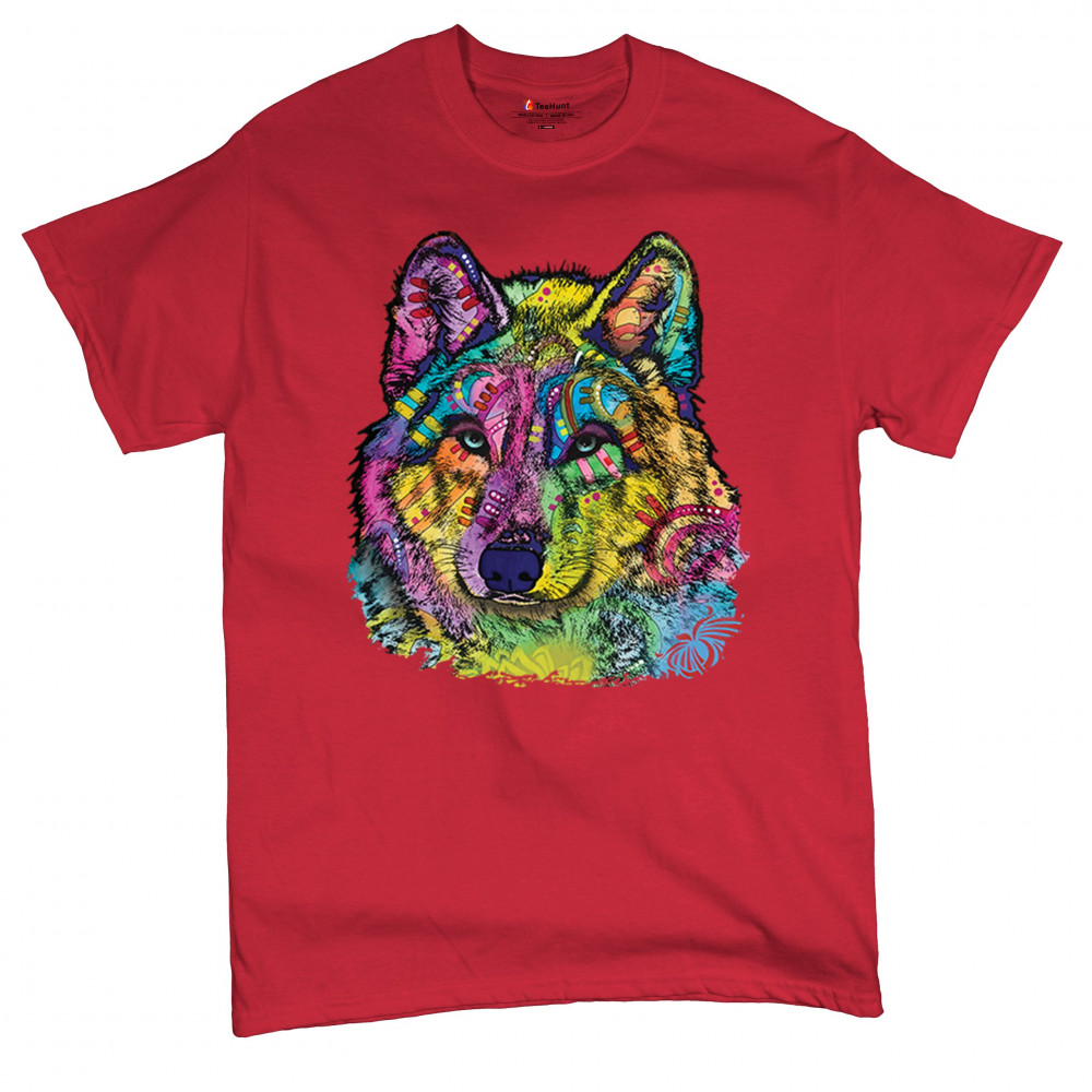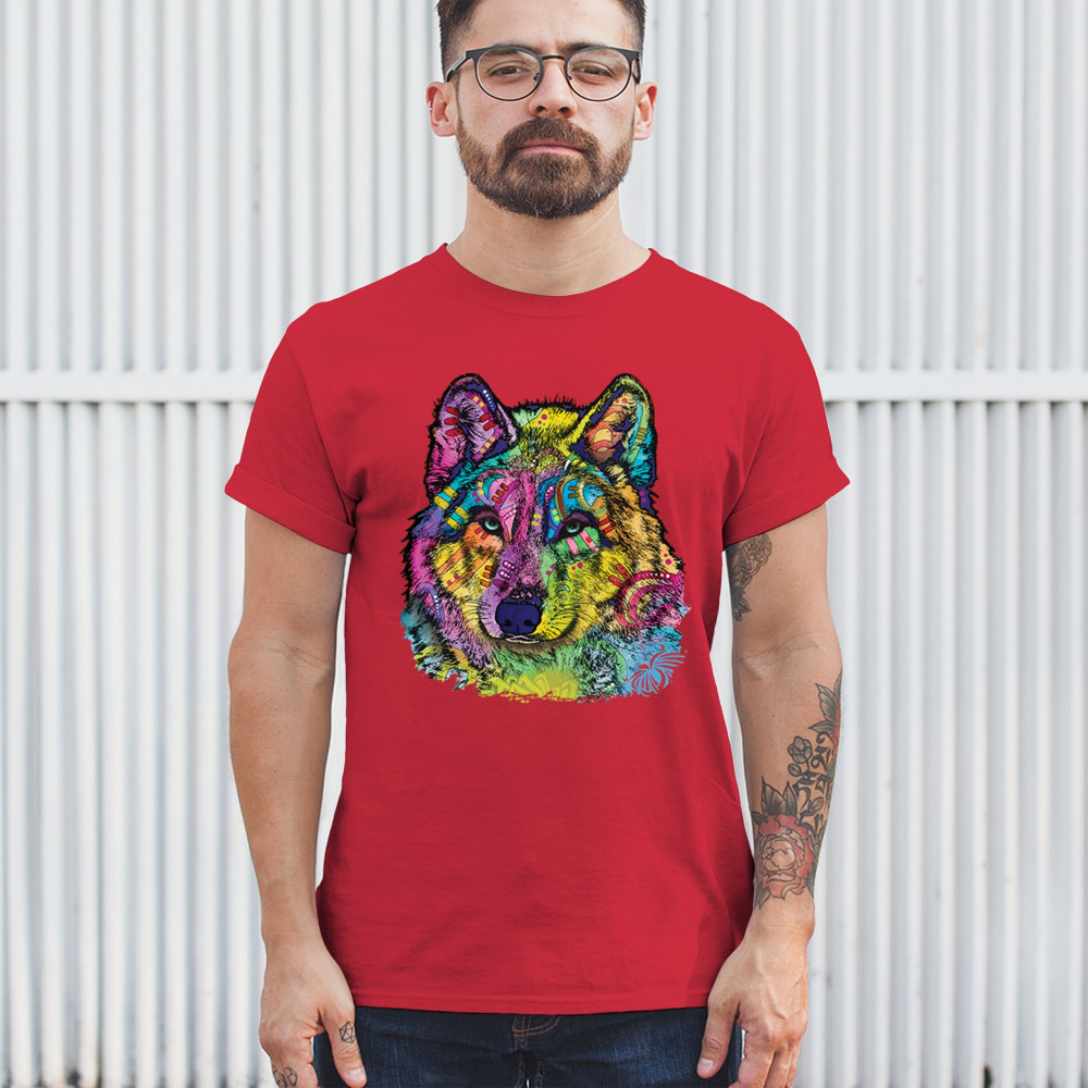 STARE OF THE WOLF t-shirt dean russo colorful neon animal art men's tee red