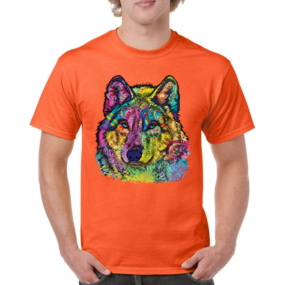 STARE OF THE WOLF t-shirt dean russo colorful neon animal art men's tee orange