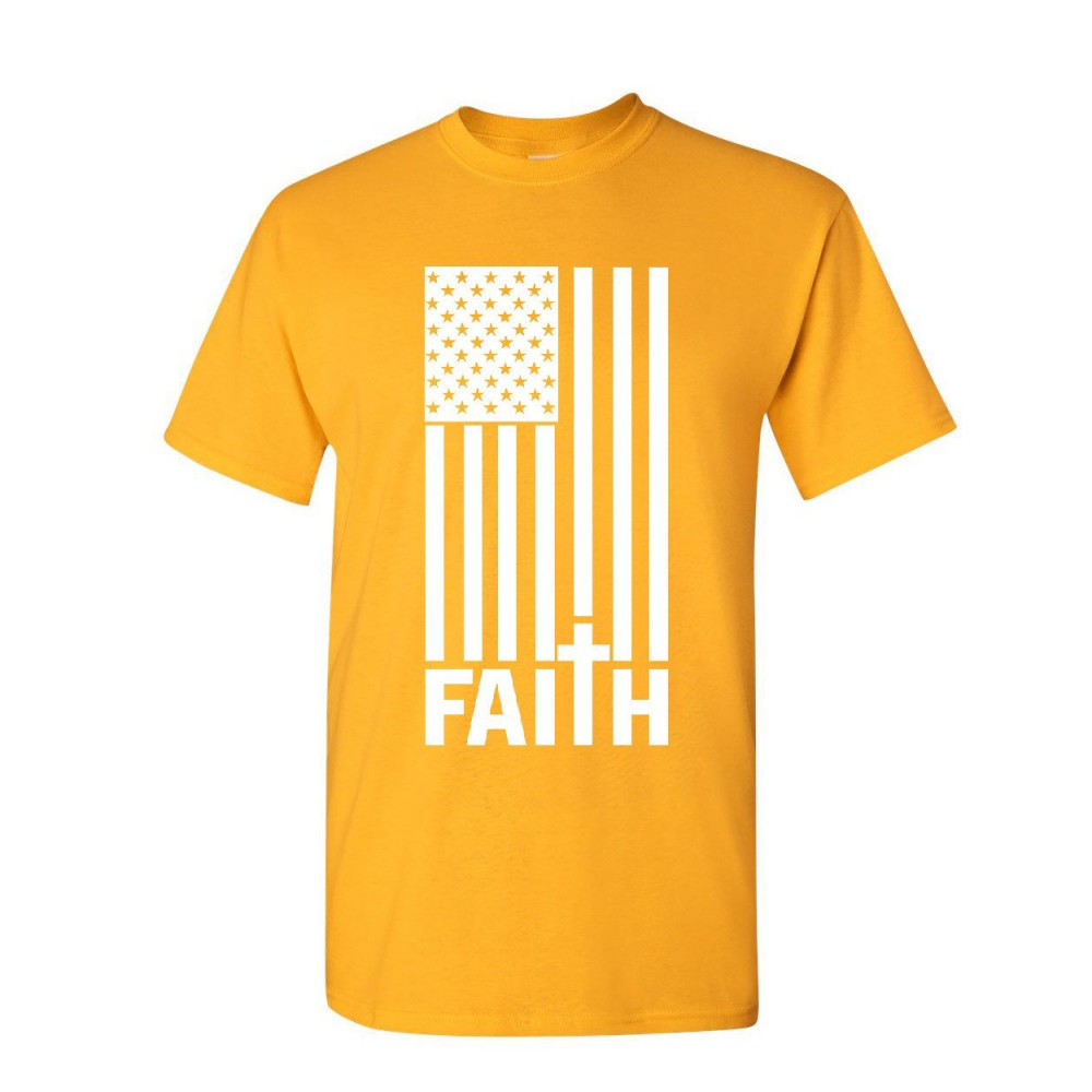 STARS AND STRIPES FAITH t-shirt american values cross jesus god mens tee shirt yellow