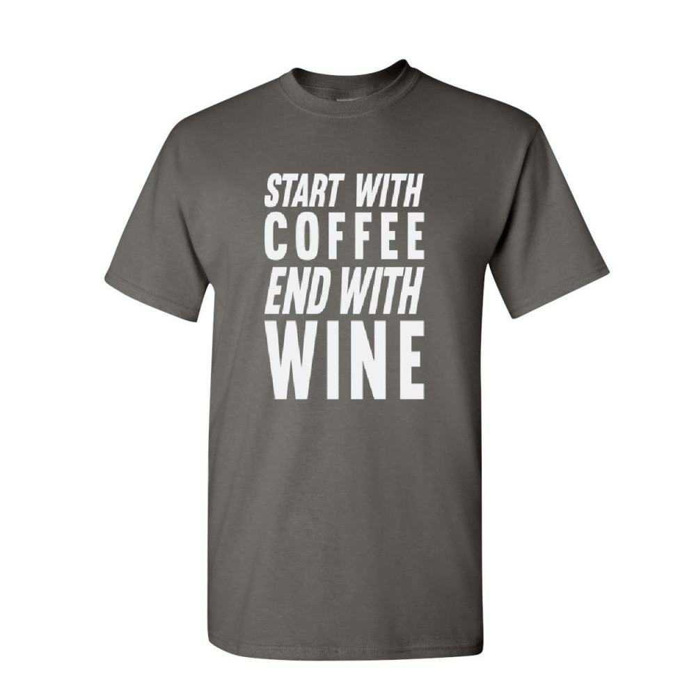 START WITH COFFEE END WITH WINE t-shirt drinking daily routine mens tee shirt charcoal