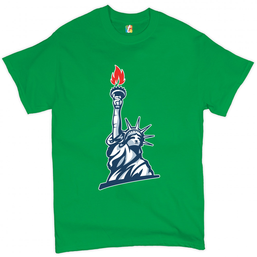 STATUE OF LIBERTY t-shirt manhattan new york 4th of july freedom men's tee green