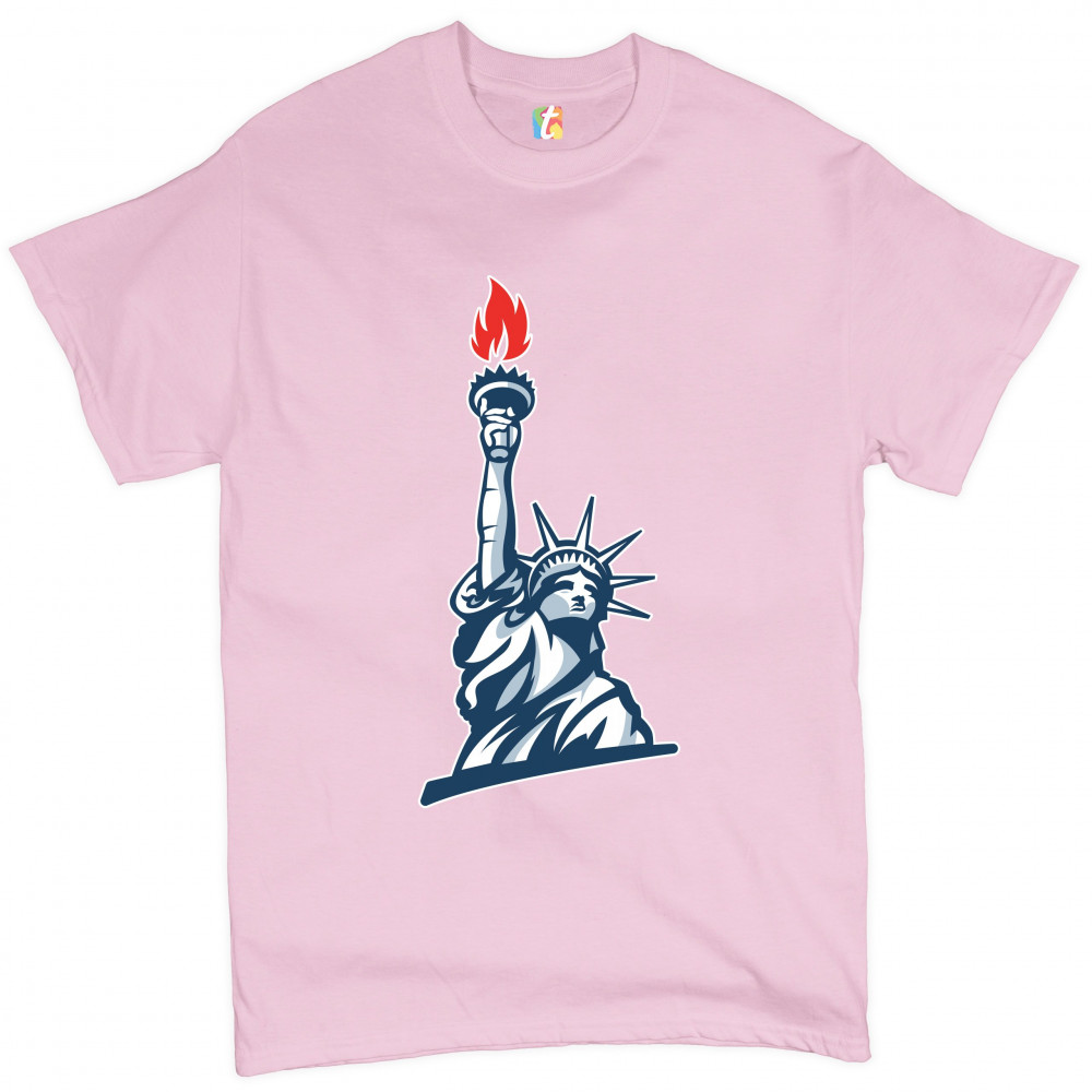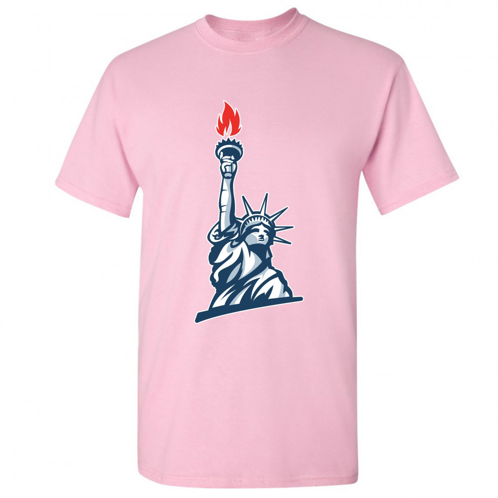 STATUE OF LIBERTY t-shirt manhattan new york 4th of july freedom men's tee light pink