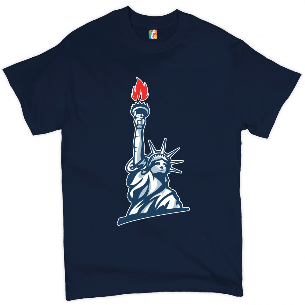 STATUE OF LIBERTY t-shirt manhattan new york 4th of july freedom men's tee navy blue