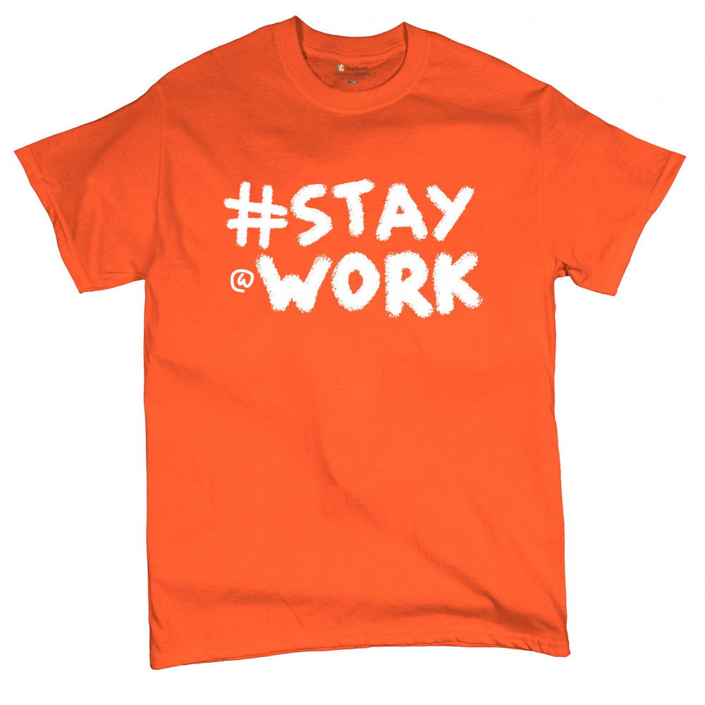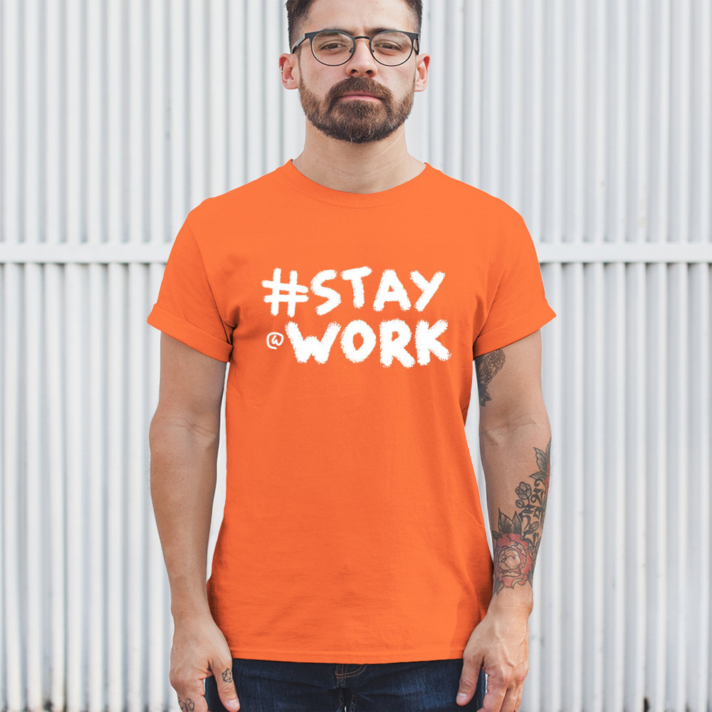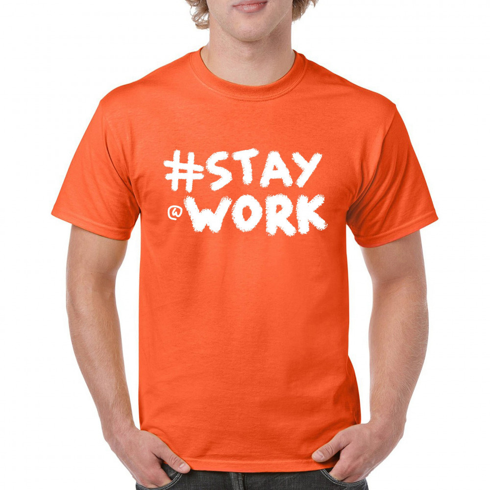 STAY AT WORK FUNNY ELON MUSK TWEET PARODY t-shirt liberal sarcasm men's tee orange