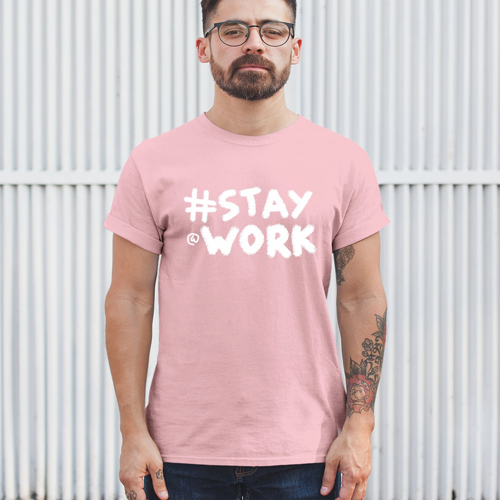 STAY AT WORK FUNNY ELON MUSK TWEET PARODY t-shirt liberal sarcasm men's tee light pink