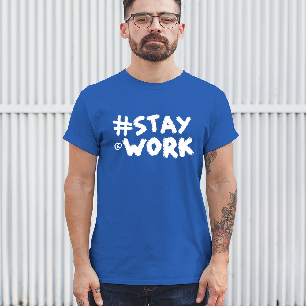 STAY AT WORK FUNNY ELON MUSK TWEET PARODY t-shirt liberal sarcasm men's tee royal blue