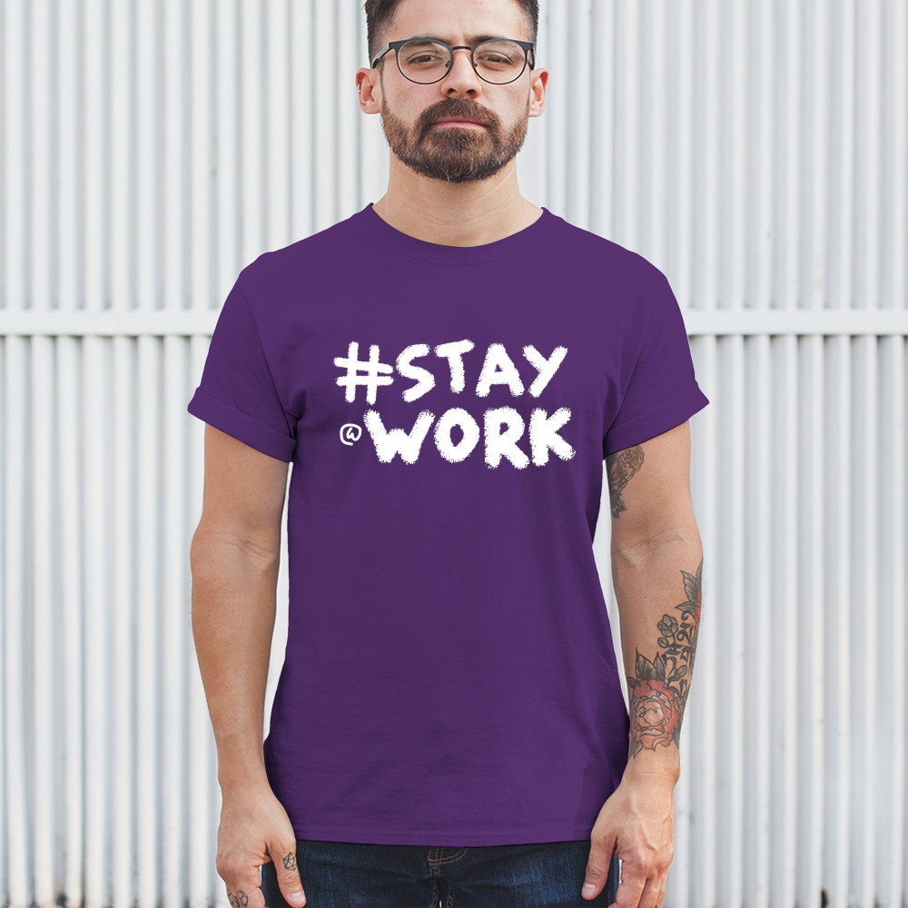 STAY AT WORK FUNNY ELON MUSK TWEET PARODY t-shirt liberal sarcasm men's tee purple